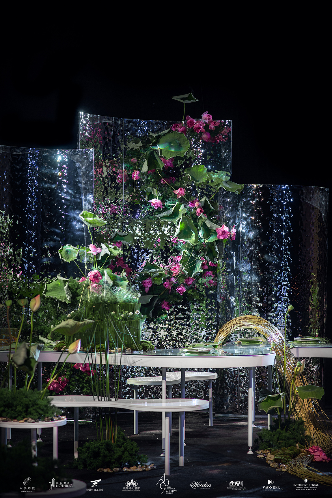 2021宴会定制产品趋势发布,婚礼风尚携行业优质供应资源那行智造(NOTHING),与全国五区域宴会设计力量,开创洞察消费新趋势的前瞻性的宴会定制产品趋势设计。并于活动现场进行展示讲解,由于疫情未能抵达现场的品诚创意婚礼,以线上指导方式完成了此次宴会定制产品趋势发布。