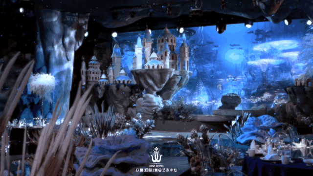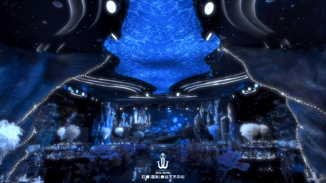 华义设计团队这次决定,从千篇一律的海洋风婚礼中跳脱出来,设计一个别具一格的海洋主题宴会厅作品。
