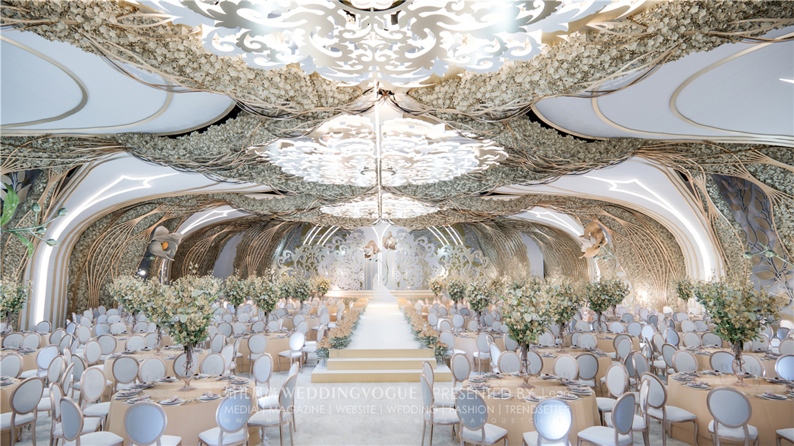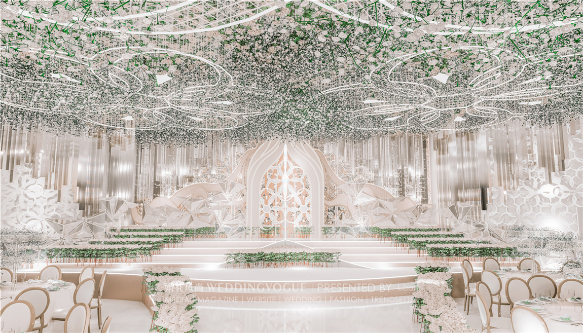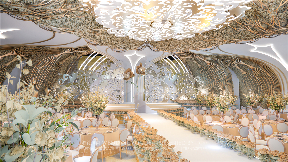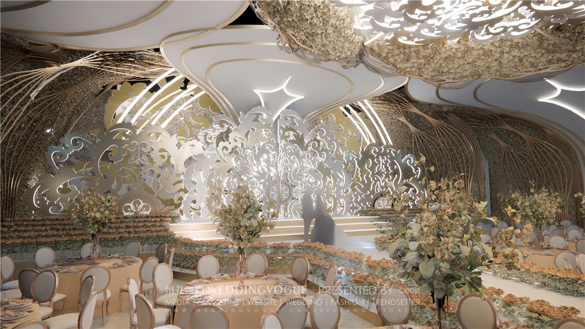 婚礼堂是爱与梦想中的殿堂,环境对品牌的打造举足轻重。本案中,设计师对婚礼堂的1,2,3,5层宴会厅进行了设计。