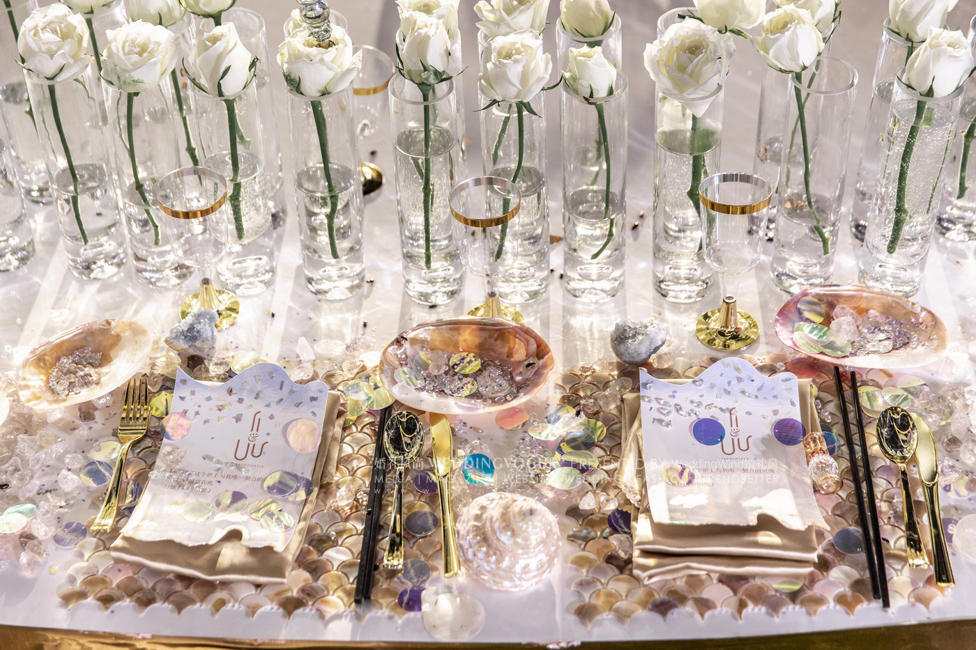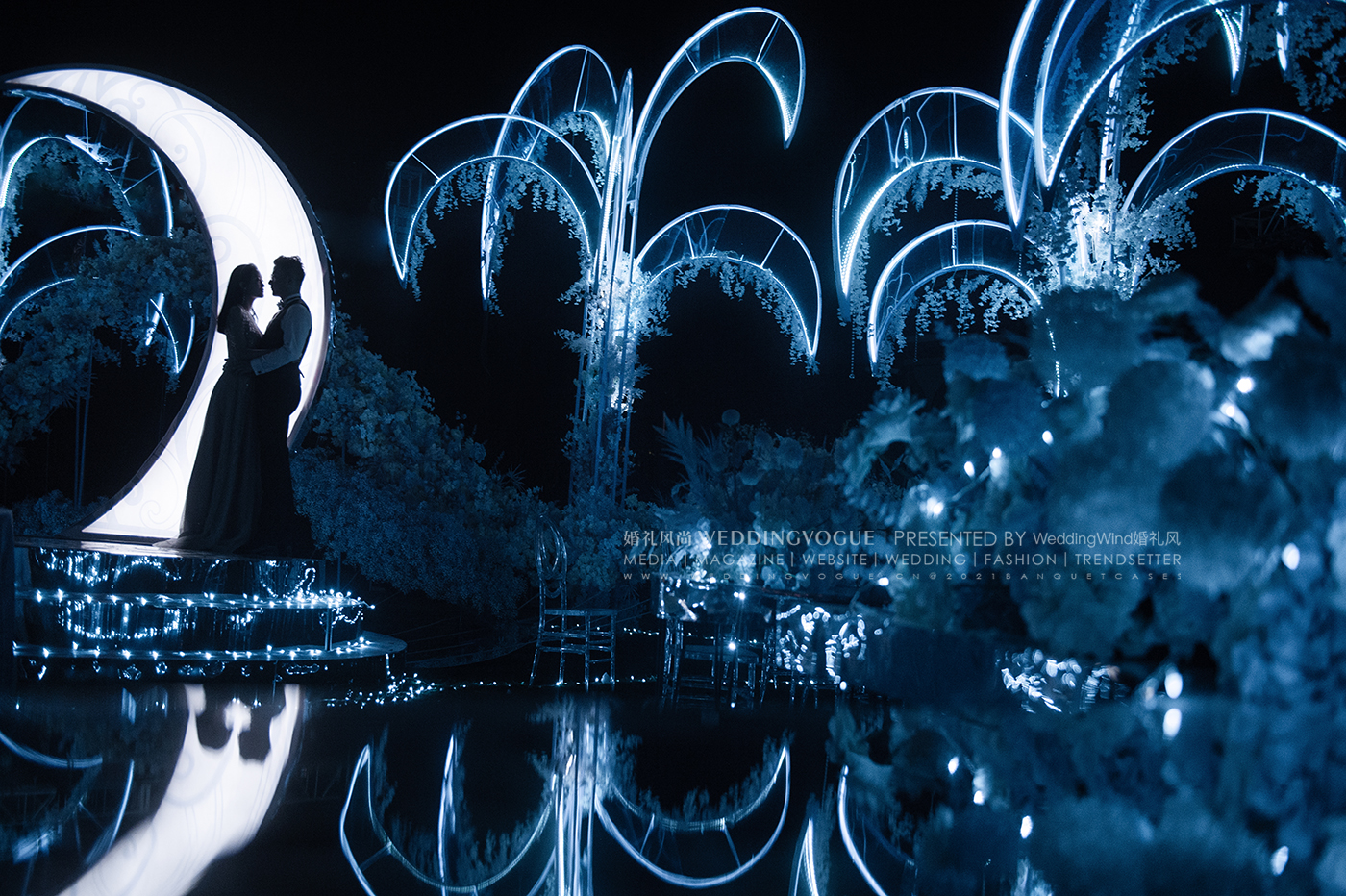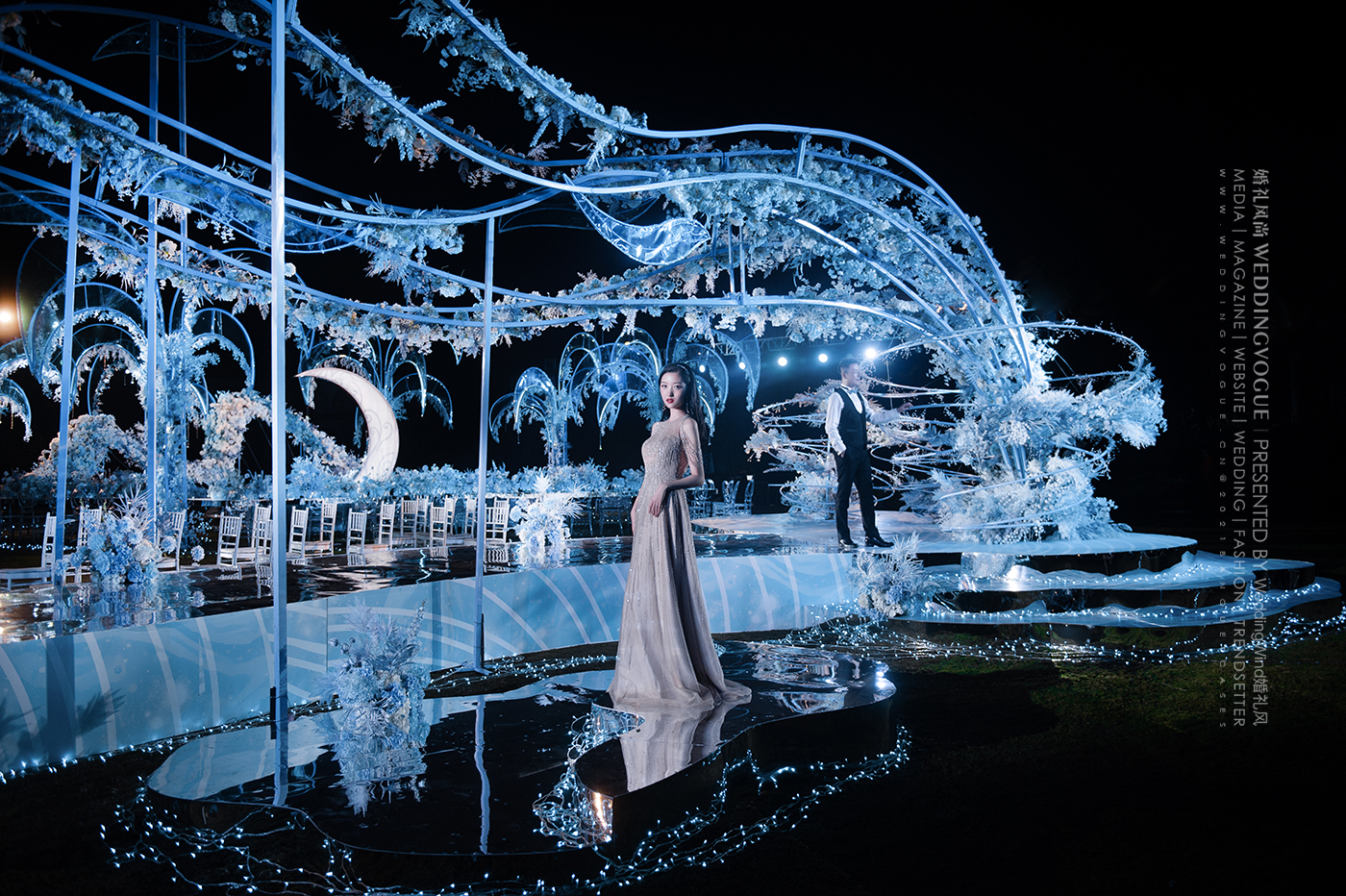 婚礼仪式区的“水国殿堂”和宴会区的“秘境喷泉”两处幻境,不仅极具视觉呈现的原创性和美感,同时也让新人和宾客沉醉于代表爱意与柔情、象征至爱不渝的水之国。