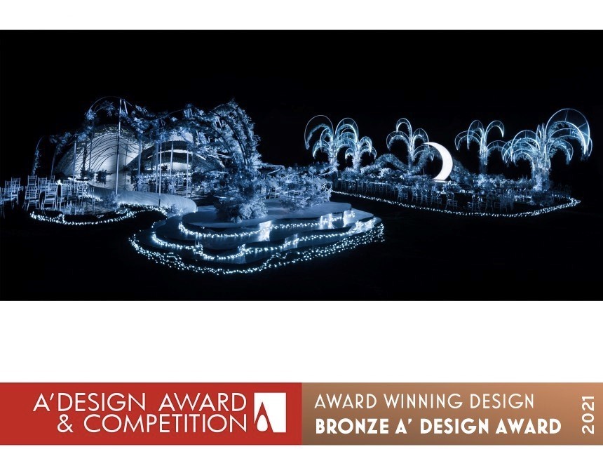 在A' Design Award中获奖的作品《水国秘境》则是一场以水为核心、表现圣洁爱情的奇幻场景。水生万物,利而不争,它可以拥有一切形状,而爱亦是如此。