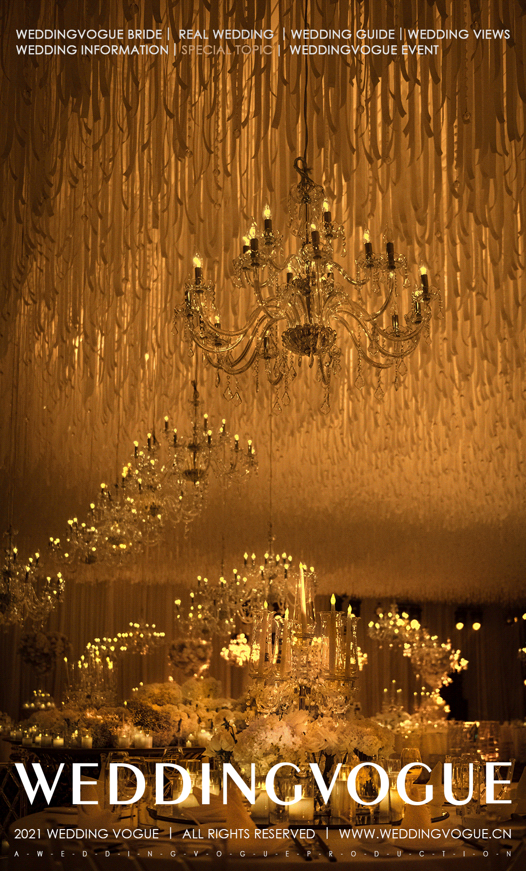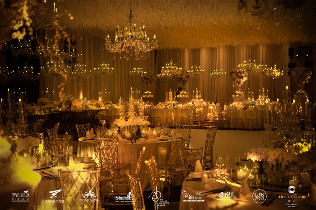 随着时间推移技术跃进,水晶灯早已不再局限于照明功能,其装饰作用在宴会设计中被运用得更为广泛。设计师们通过悬挂方式、排列组合、场景应用等设计手法为水晶灯赋予了更多新意。