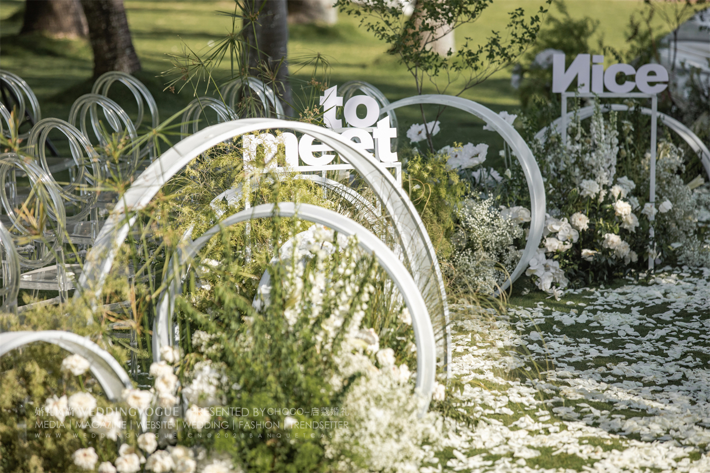 在看见、看遍、看厌“门庭若市、车马喧嚣、推杯换盏”这般千篇一律的婚礼形式之后,诱发婚礼参与感和幸福感的感官阈值不断高涨,更多新人把婚礼地点从厅堂搬到自然,宾朋也为参与新鲜花样的婚礼乐此不疲。