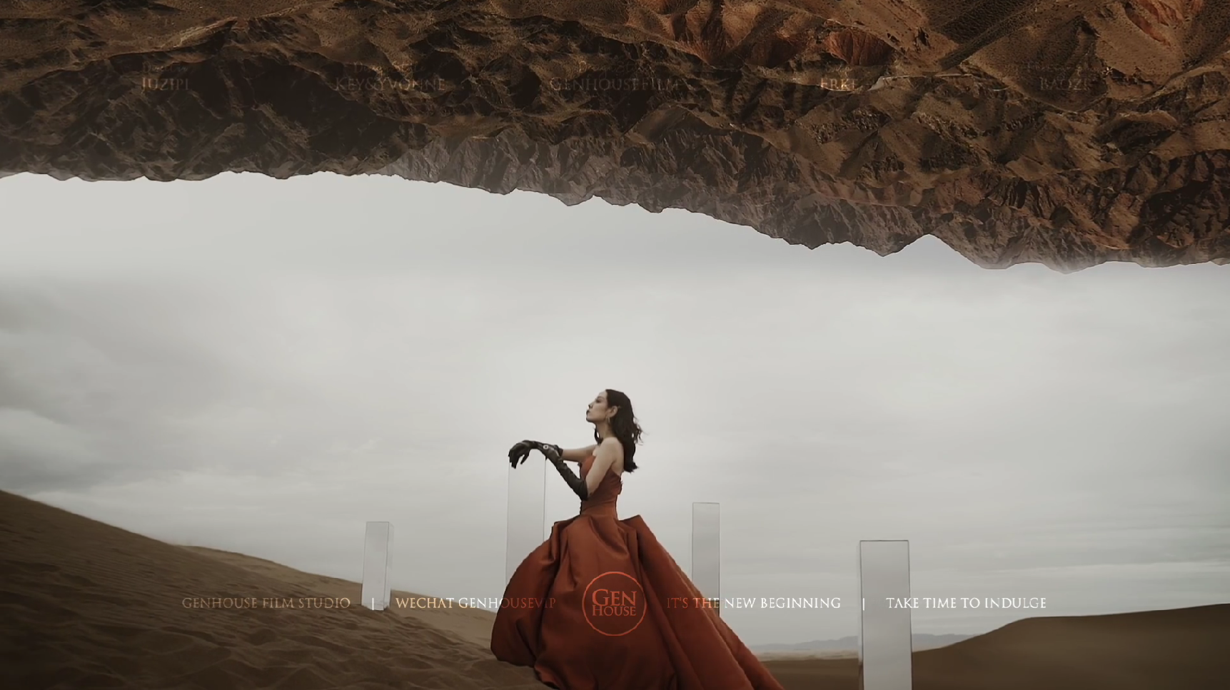 空灵魔幻的背景音、张弛有度的韵律和快速转换的镜头配合,催化出一种瞬间触动人心的视听效果。具有科幻感的镜面装置和“时空之门”,把新人对于彼此的情感融进沙丘之巅、悬崖天堑。