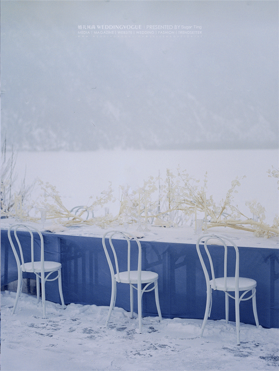 设计师Sugar Ting策划设计的这场婚礼,在西藏的「来古冰川」,婚礼场景让新人与宾客仿佛置身于另外一个星球。在中国最美雪山南迦巴瓦峰下,新人完成了first look,在结冰的然乌湖边起舞欢笑 ,在万年冰川前许下了一生的诺言。