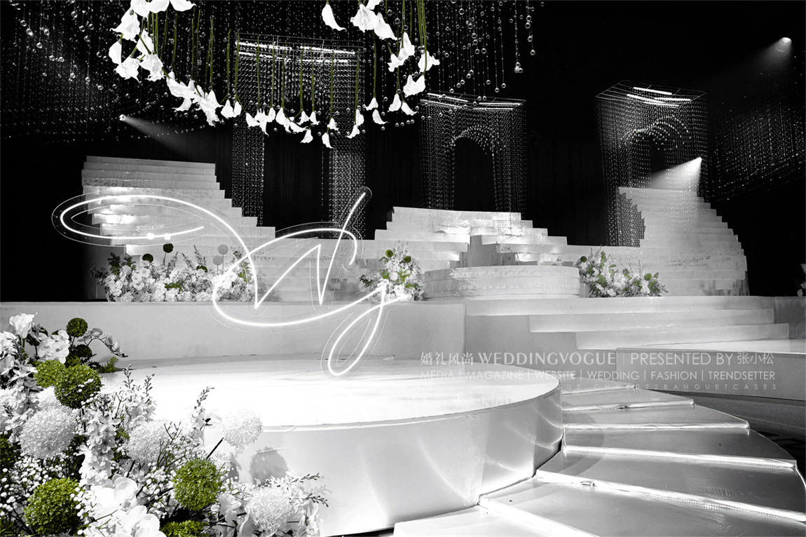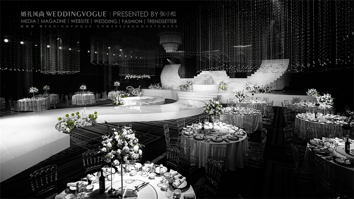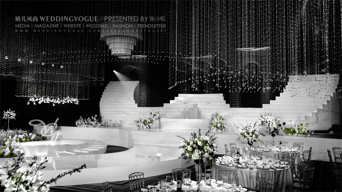 于是设计师张小松取了新娘中文形式的首字母“W”,以此为切入点,以点概面的表达呈现整个婚礼。
