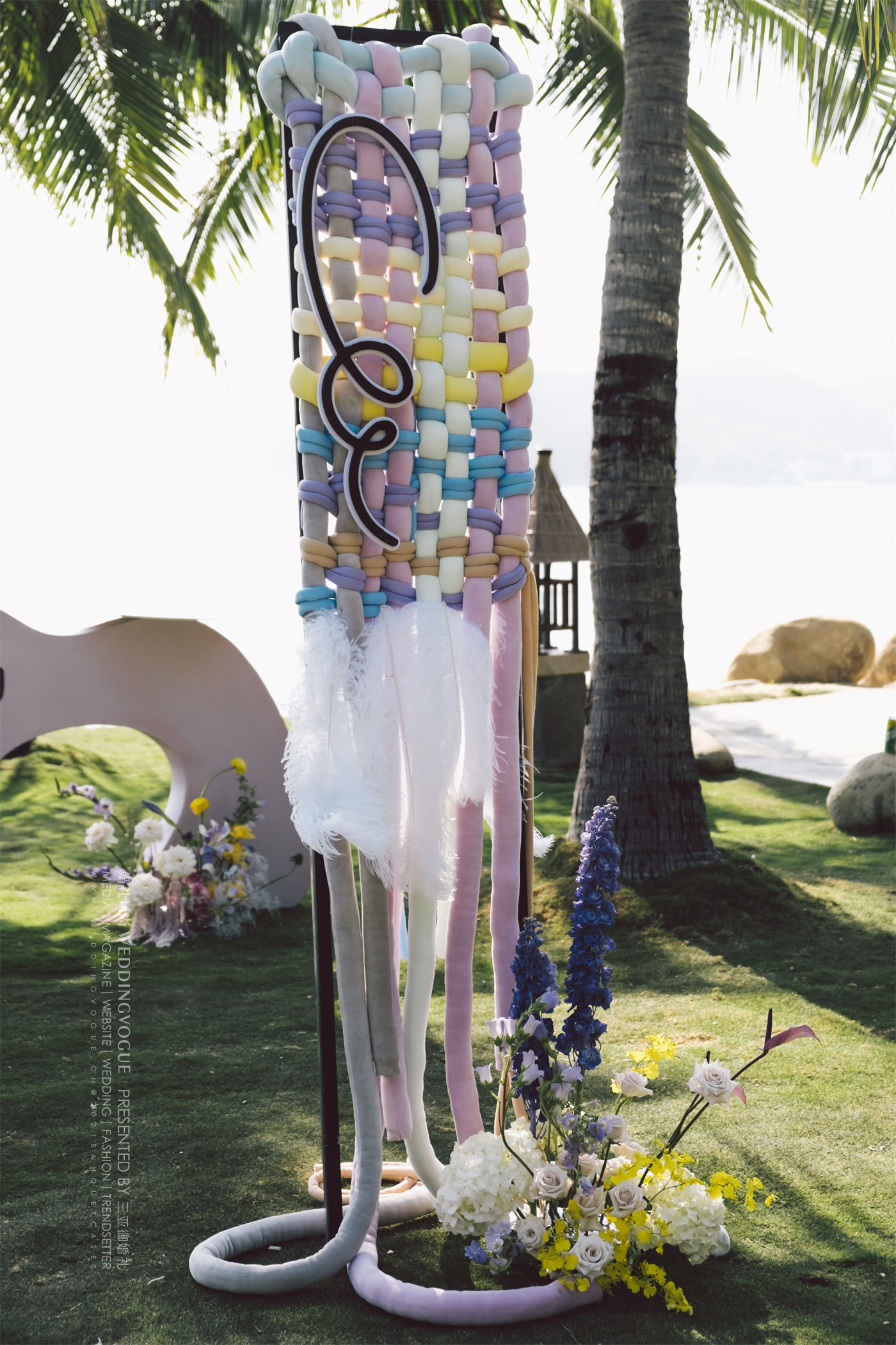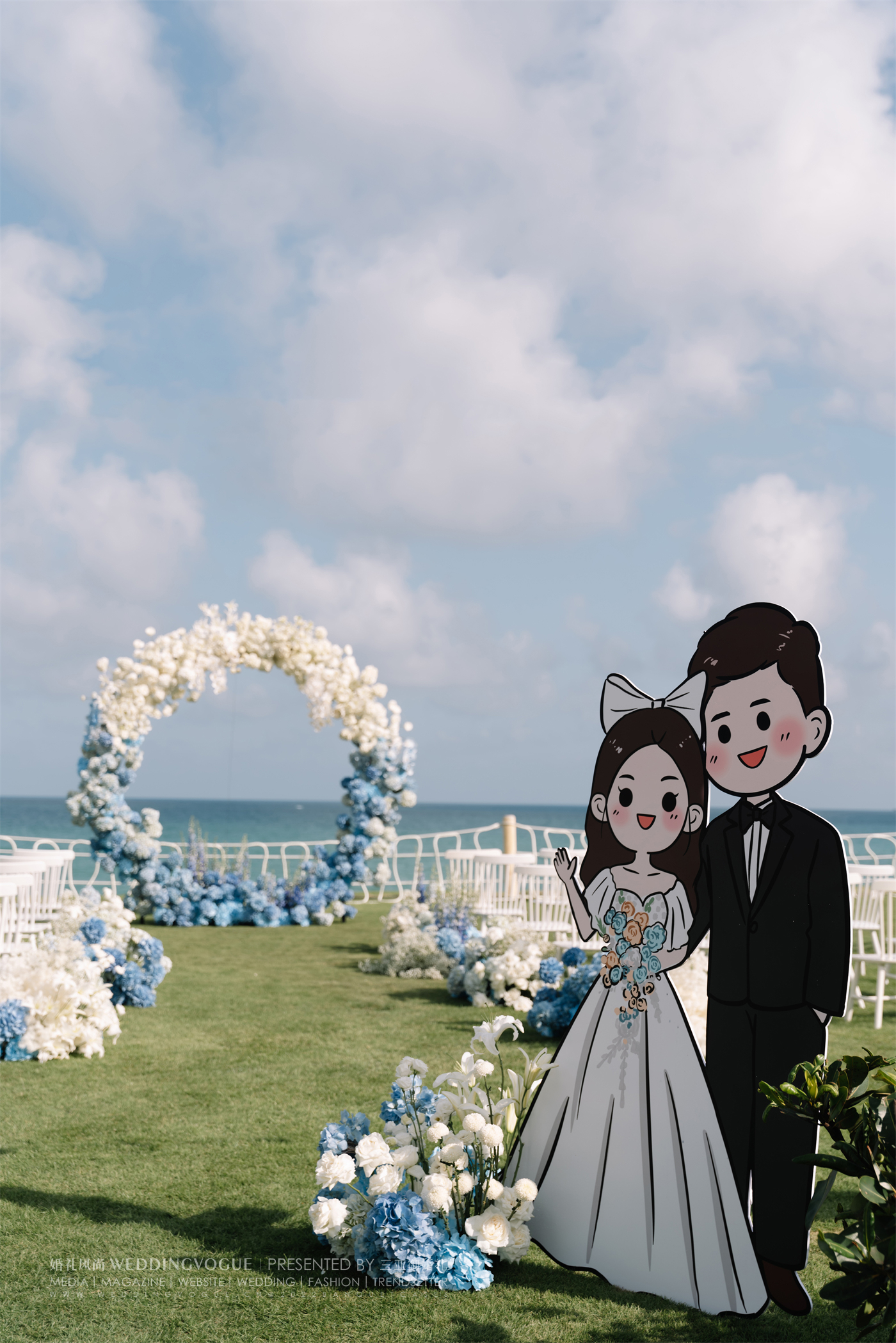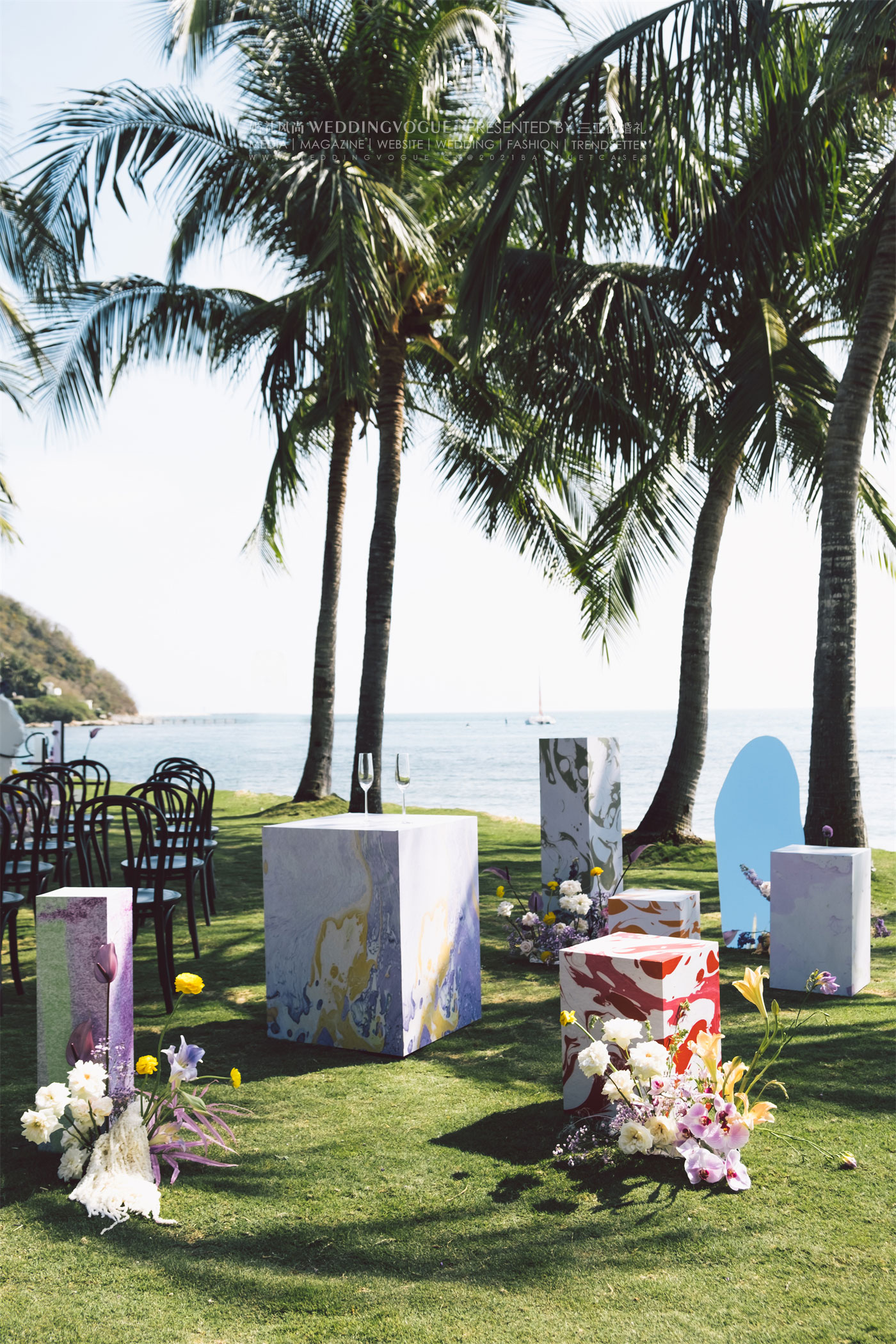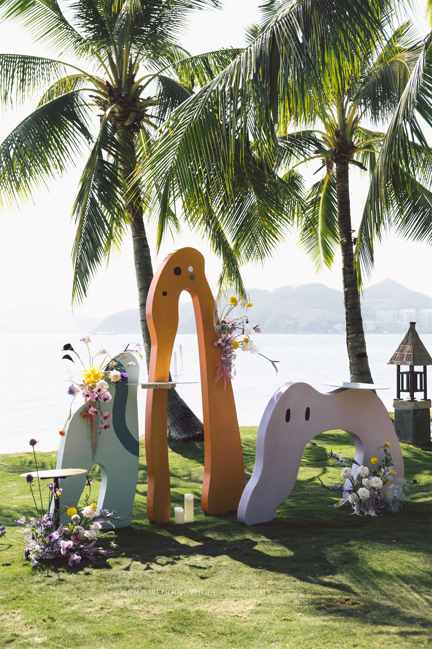 开阔通透的海边草坪让设计得以肆意发挥,一场婚礼也可以拥有非低龄化的可爱童趣。