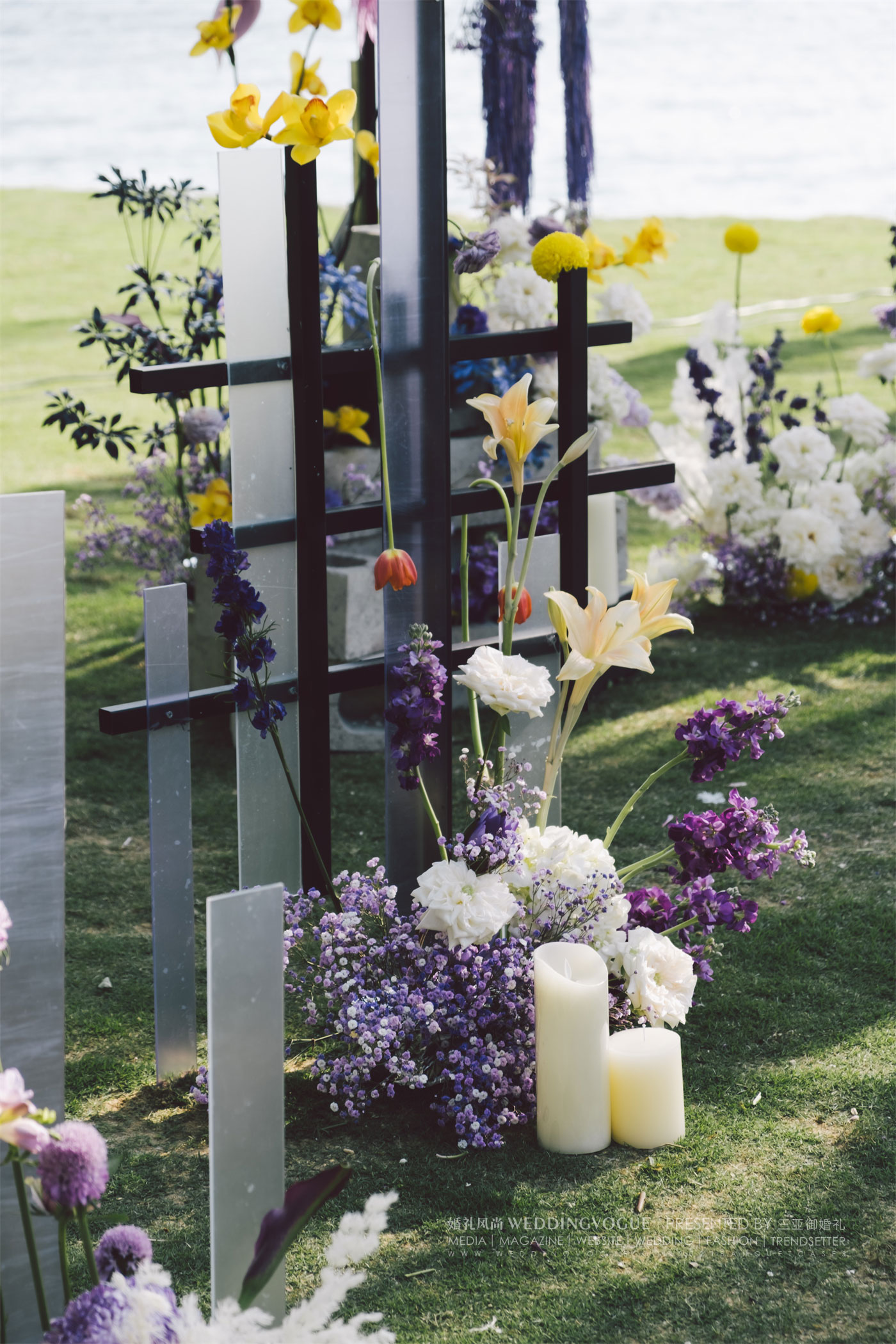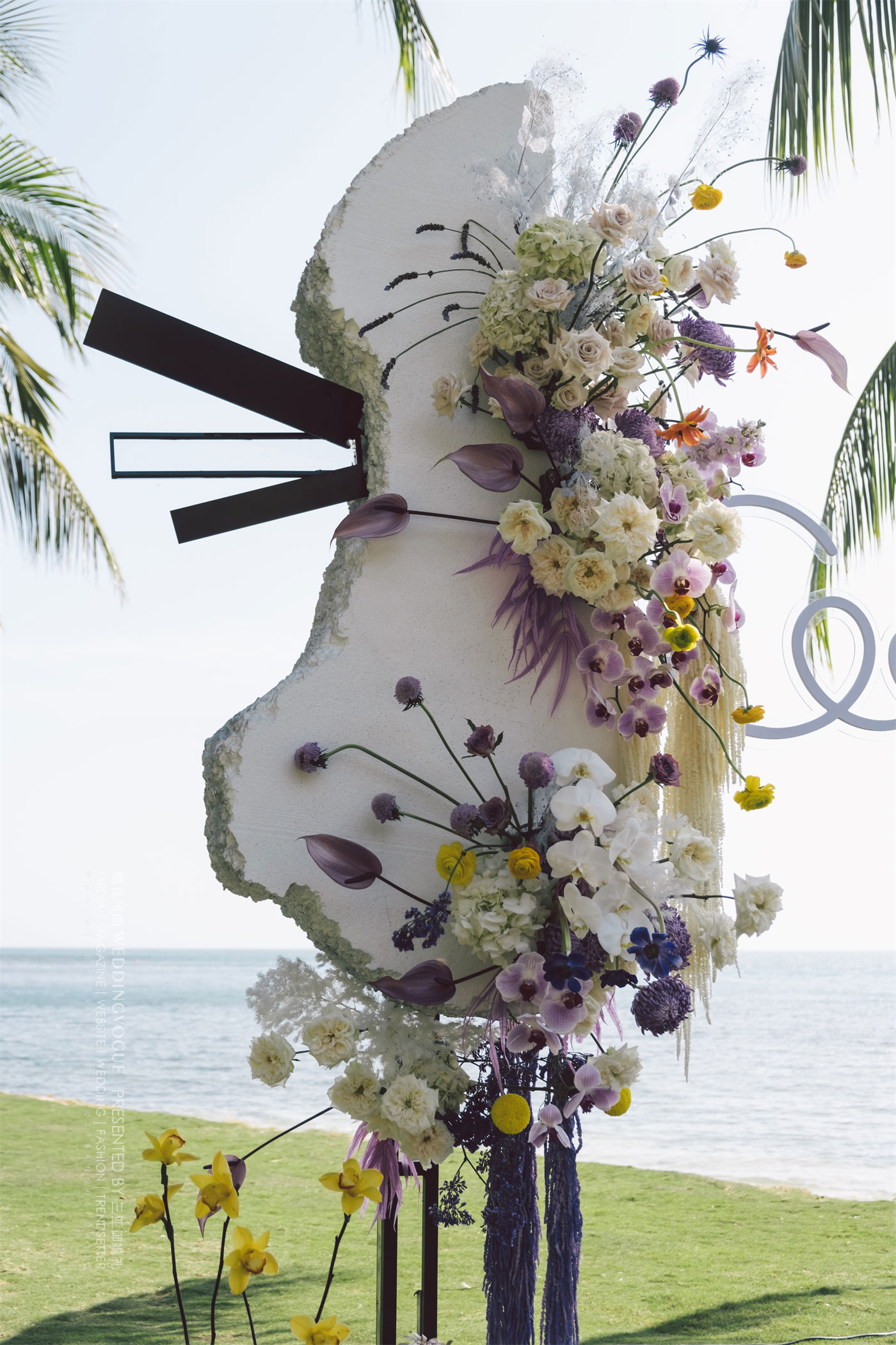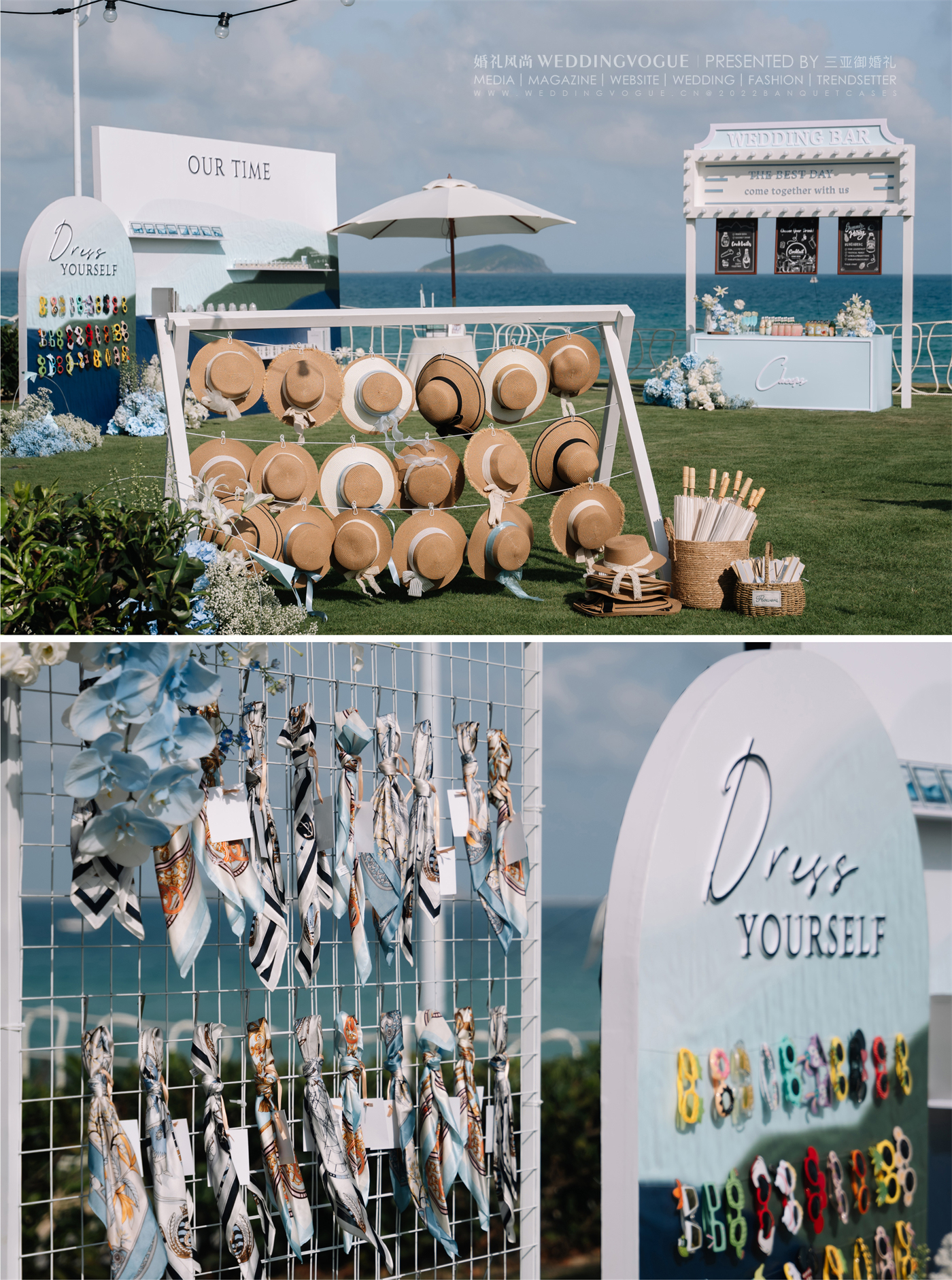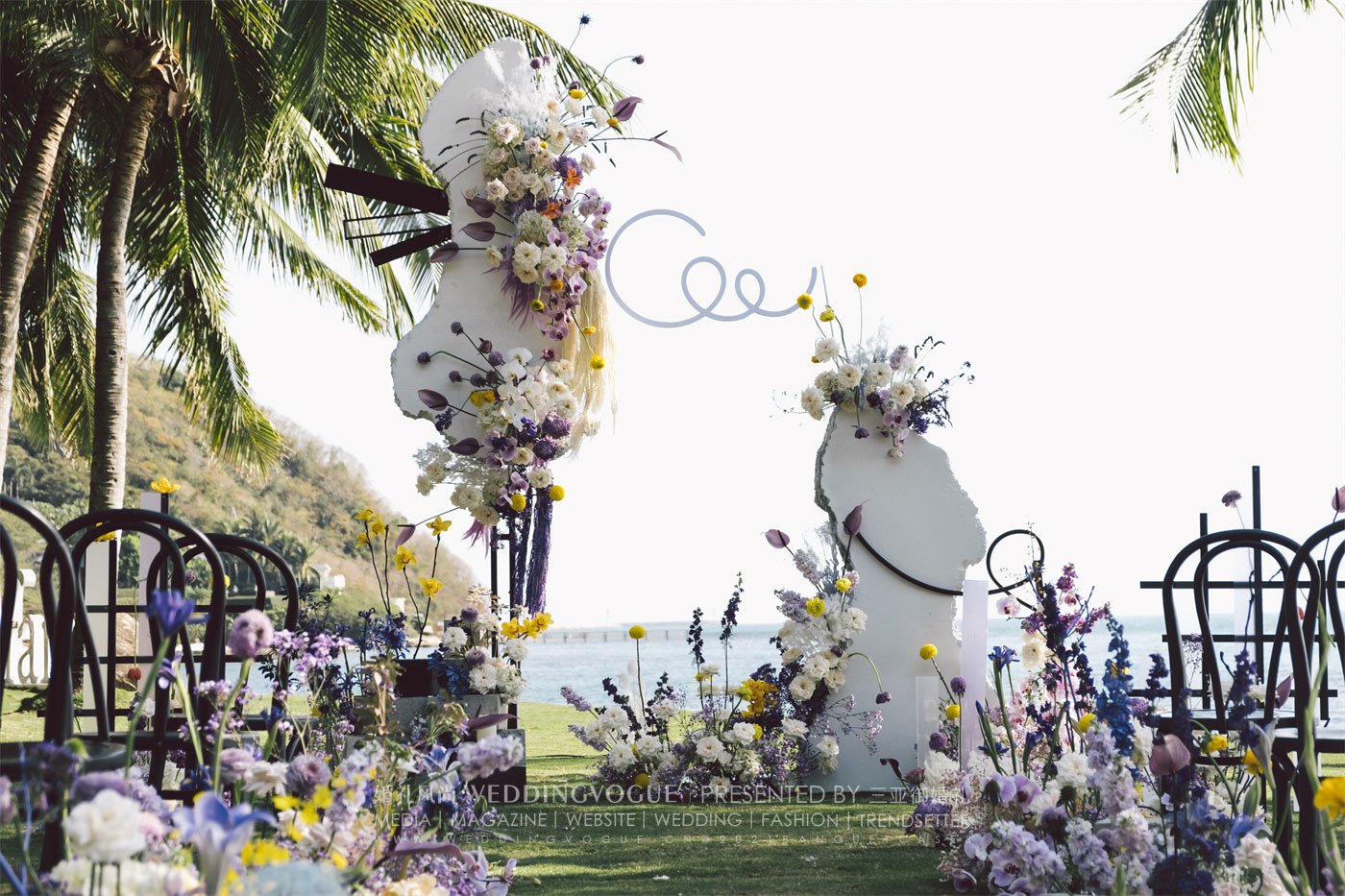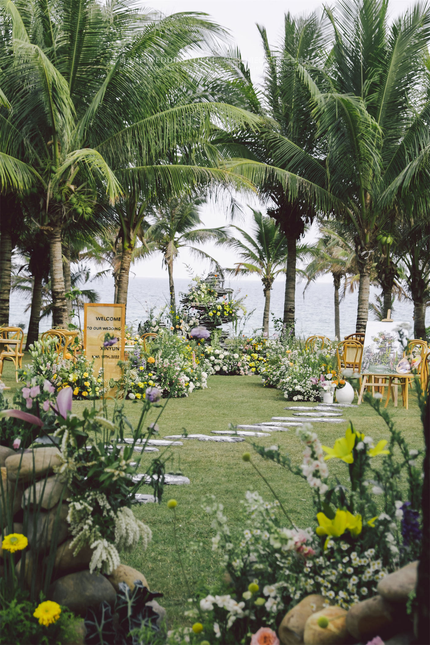 开阔通透的海边草坪让设计得以肆意发挥,一场婚礼也可以拥有非低龄化的可爱童趣。