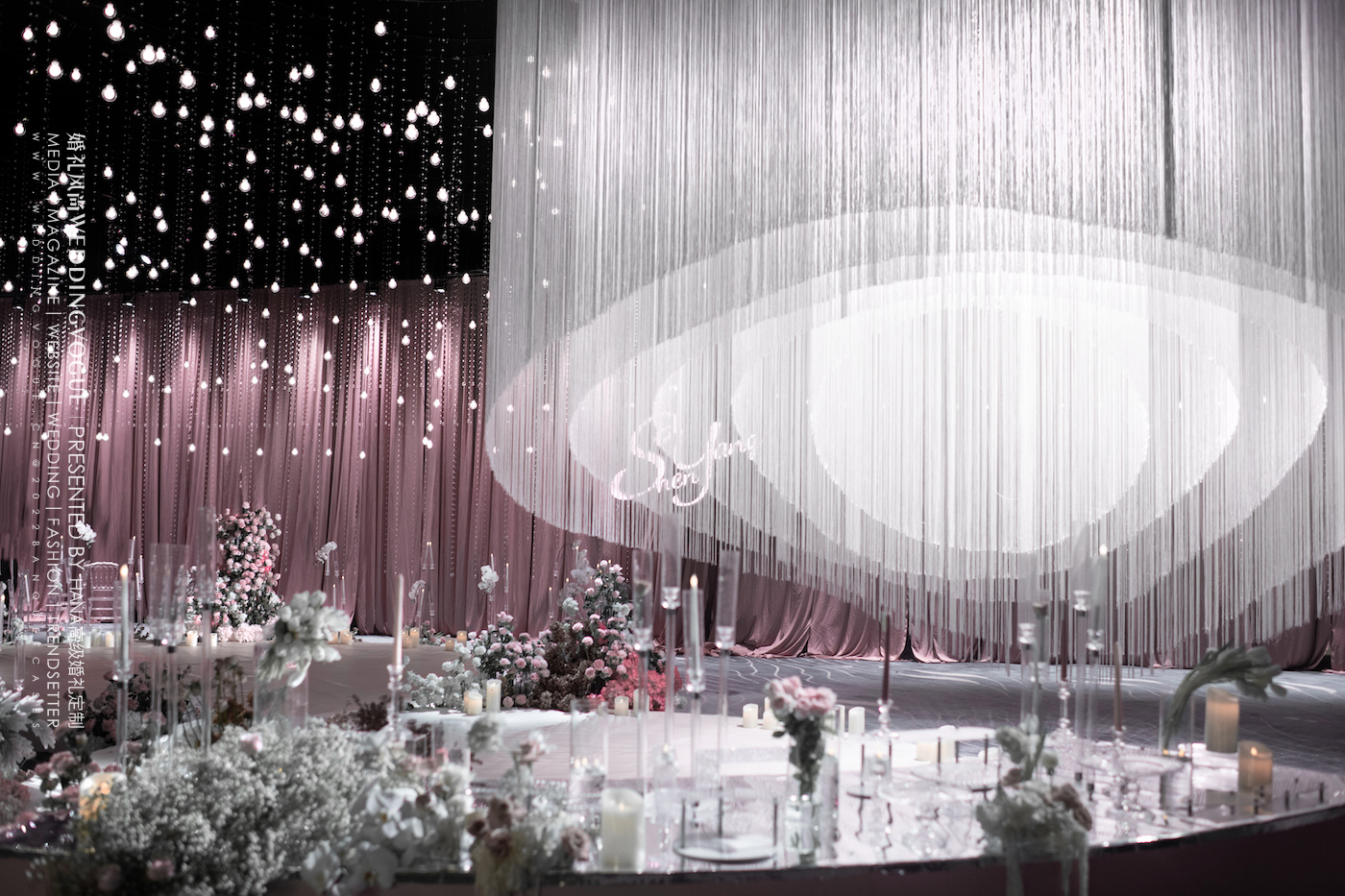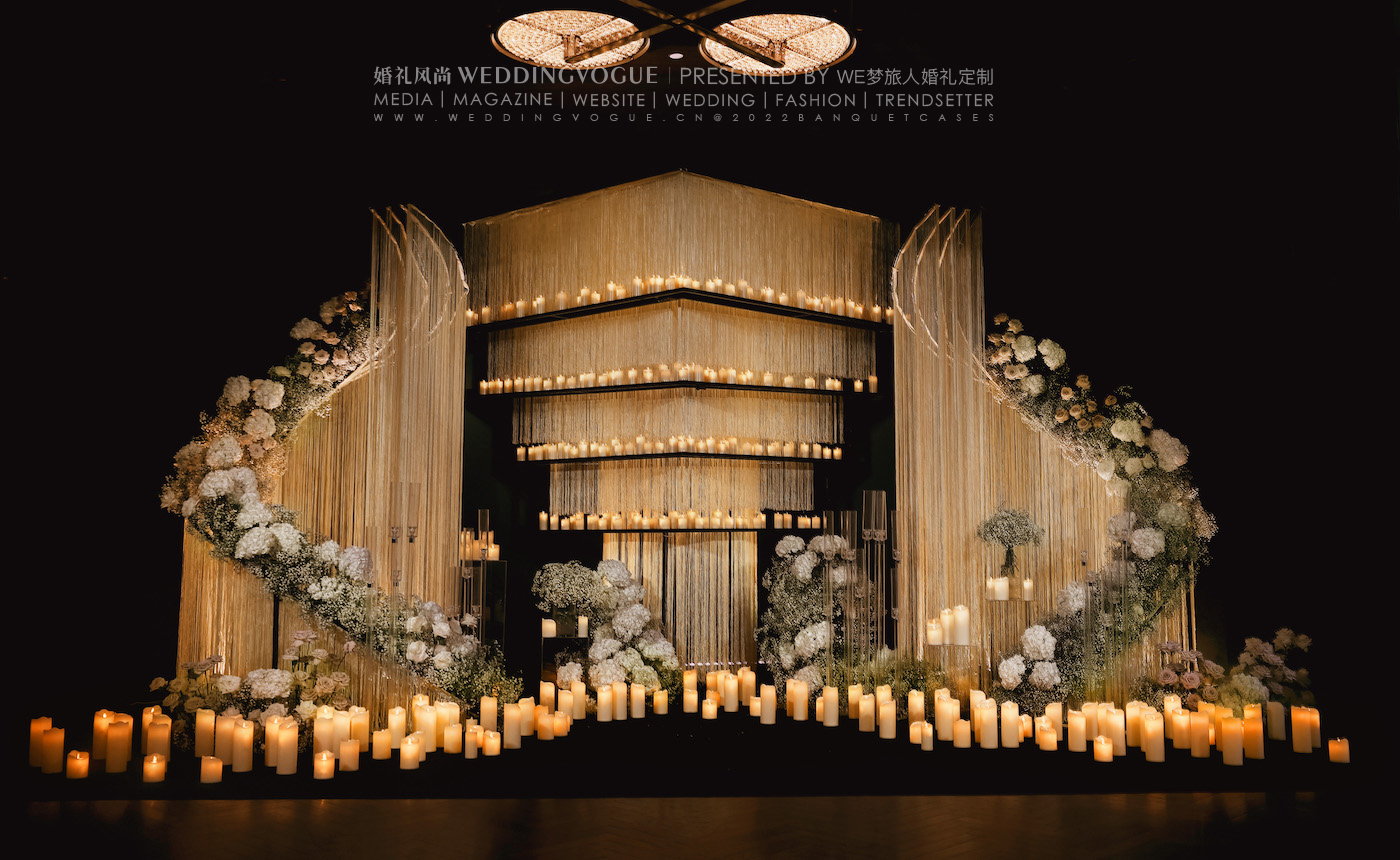以上6场婚礼以不同的色彩、不同的造型呈现出不同的婚礼质感,而其中难以被忽视的线帘尽管占比不同,但毫无疑问都担当了重要角色,和自然背景或者布幔、蜡烛、星星灯等装置融合搭配,最终呈现出颇具艺术美感的、真实落了地的婚礼,给人以美的享受。