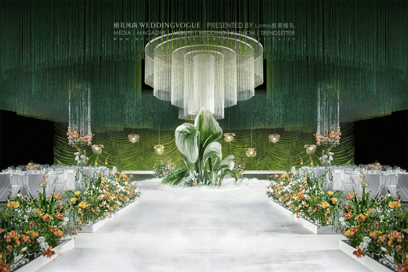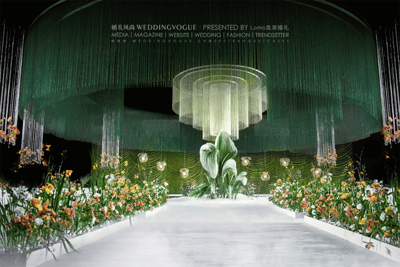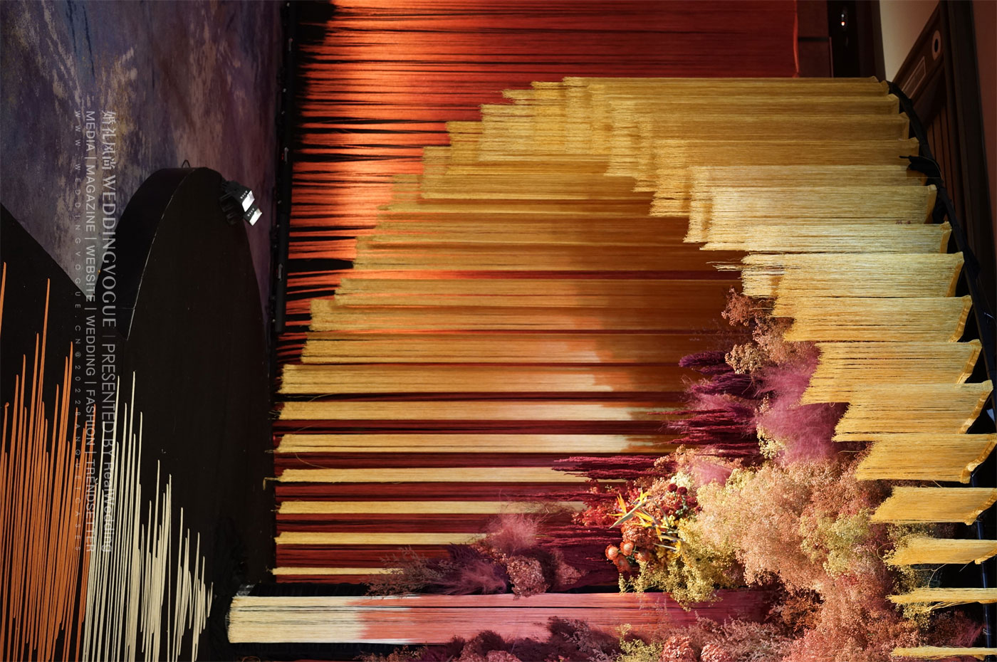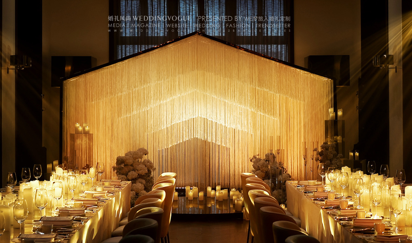 再说回线帘,作为一种婚礼布置材料,在大众审美不断提升、简约美成为一种风尚、设计师和策划师们的技艺也不断进步的当下,「天生我材必有用」,近来的线帘确实带着一种后天习得的艺术范儿,迎来了它的「第二春」。