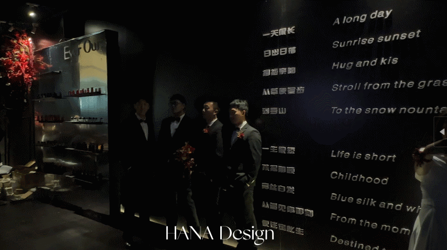 对于婚礼的呈现,新郎新娘希望是美式简约风格和黑白色系相结合的,HANA宴会设计美学团队通过对新人故事的剖析,在新娘妈妈和姐姐的辅助下,决定为新人呈现一场拥有别样高级感的影展婚礼——「HALF THE WORLD 半个世界」。