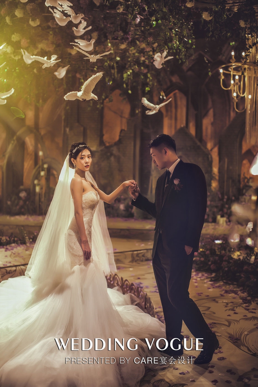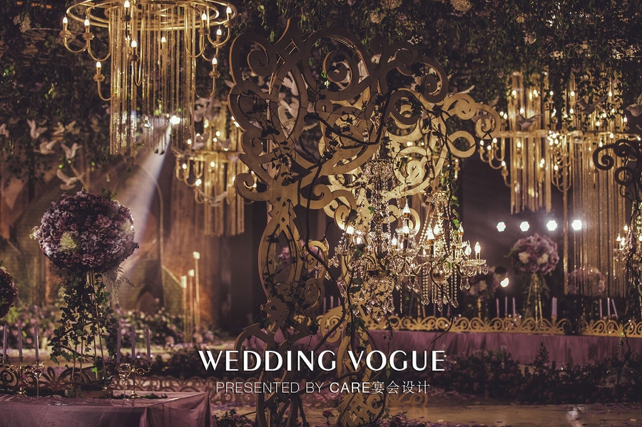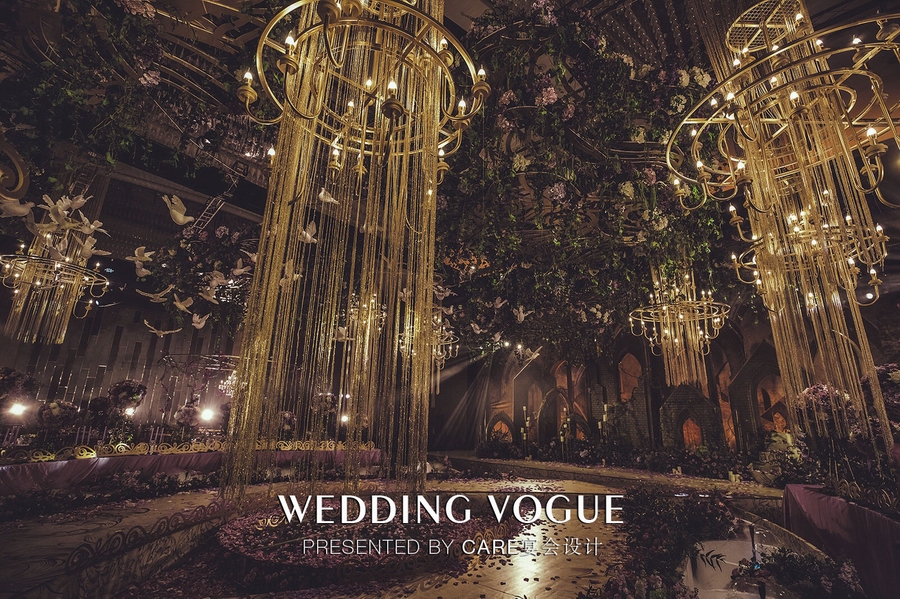 来自天津的婚礼机构care宴会设计,总是可以从新人简单的“字眼”中获得更多的灵感和创意。宴会厅是欧洲古堡的风格,给了设计师足够的发挥空间。