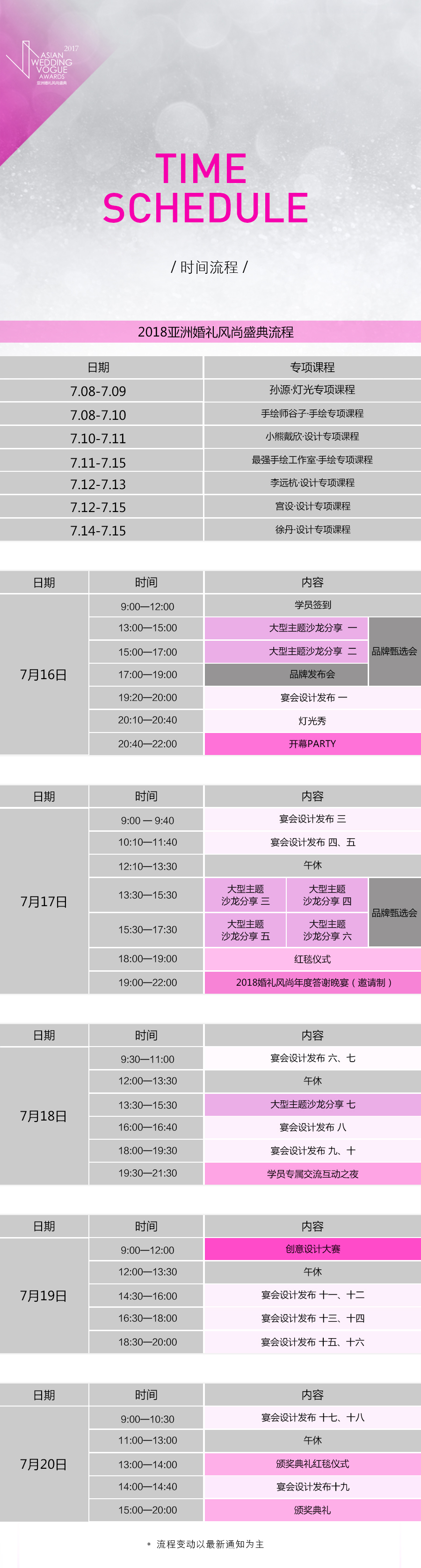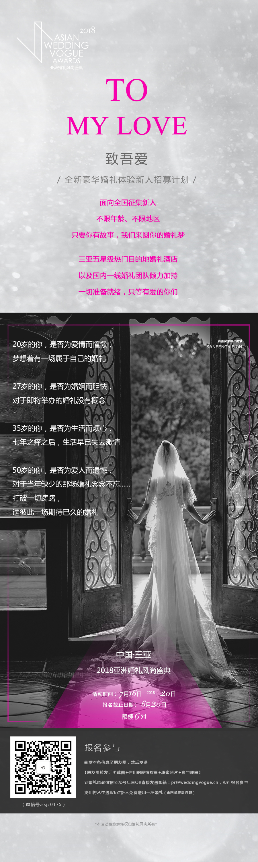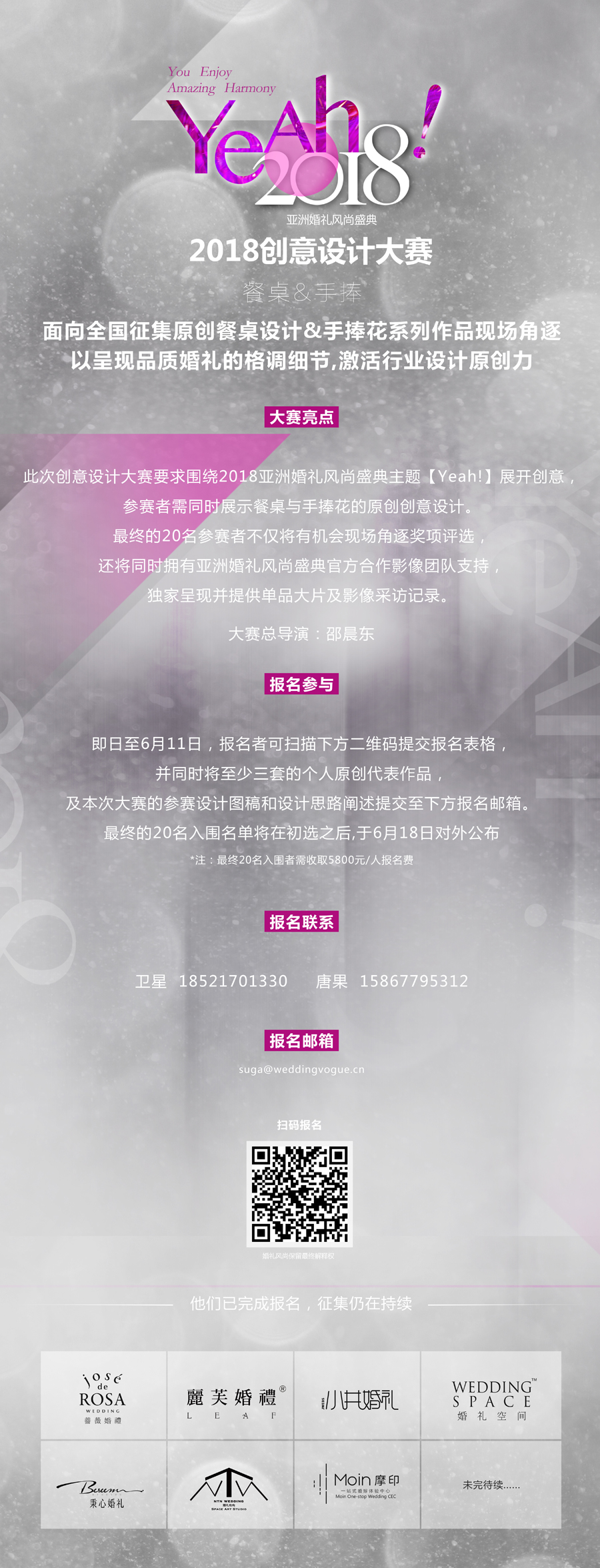相较于去年,2018亚洲婚礼风尚盛典将汇集国内更多一线婚礼人、婚礼机构以及供应商资源。旨在进一步推进行业资源整合,以缤纷的原创实力,展现并倡导婚礼行业始终活跃的新兴姿态。亦希望通过更多元的盛典形式与内容,探讨关于未来婚礼行业的健康发展形态,激活目的地婚礼生态,共同呈现婚礼行业的更多可能!