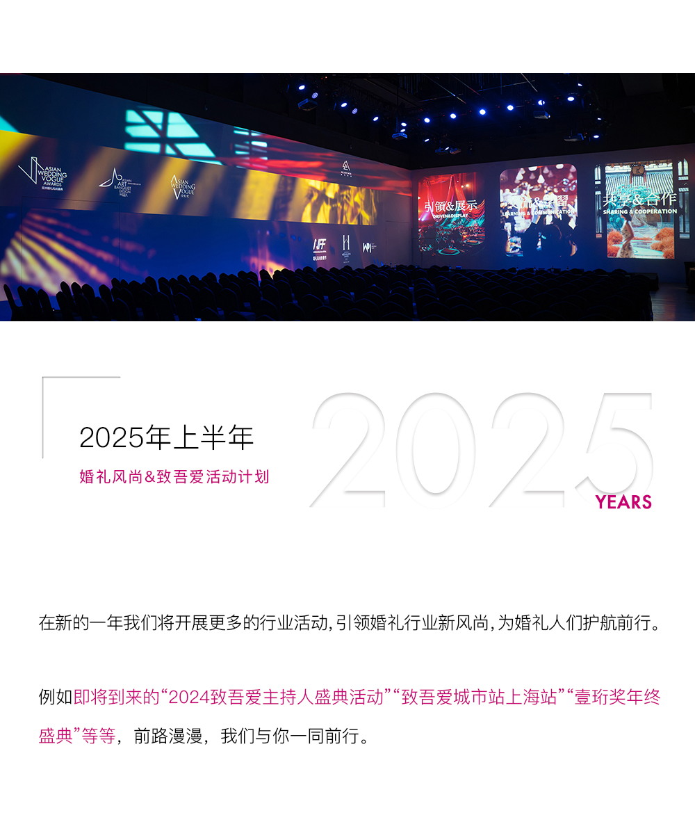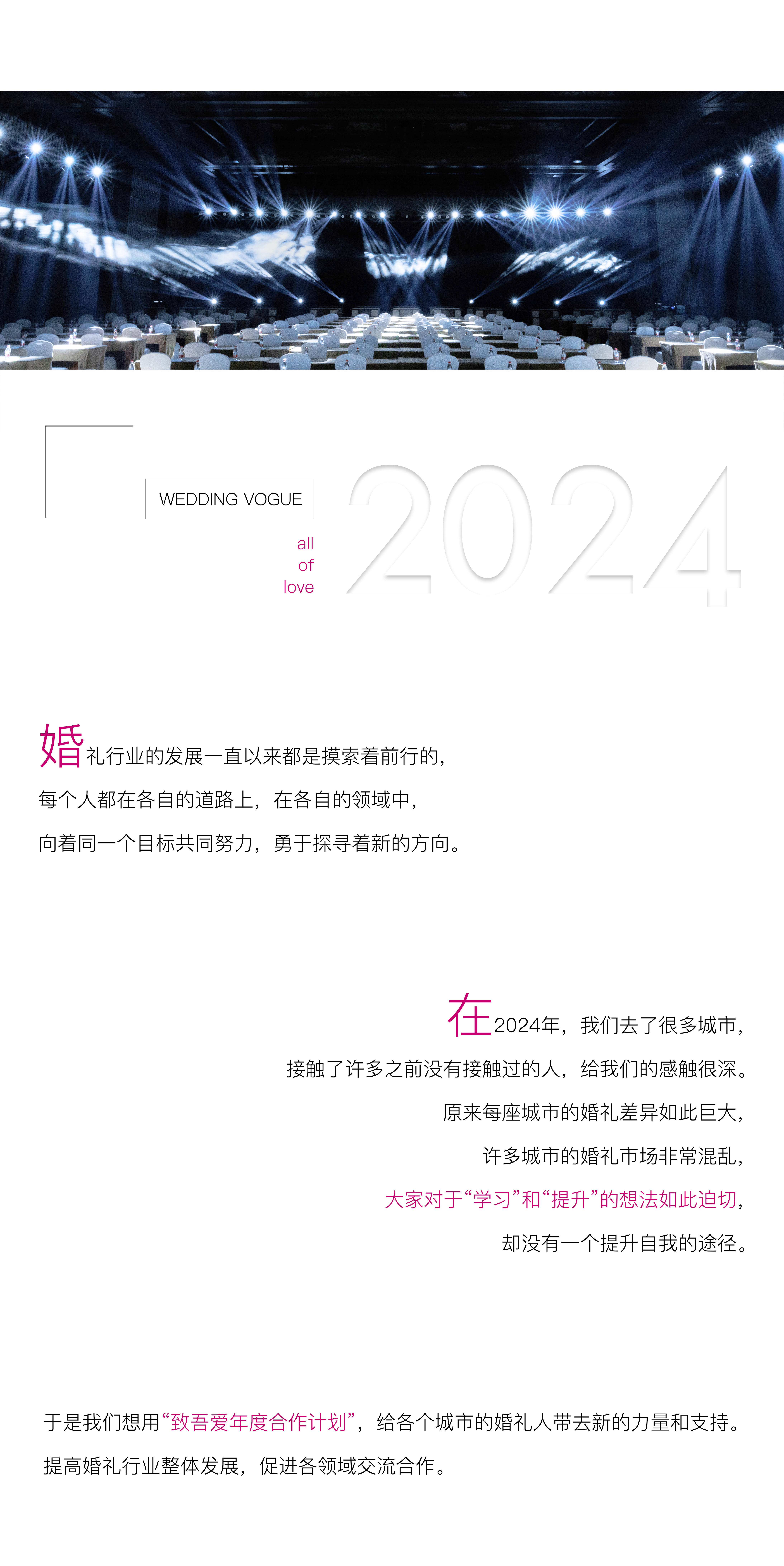 我们聚集了策划、设计、主持、影像等婚礼行业TOP级力量,去到各个城市,将深耕婚礼行业领域的宝贵经验和对过往行业市场的深刻洞察,与大家悉数分享。
