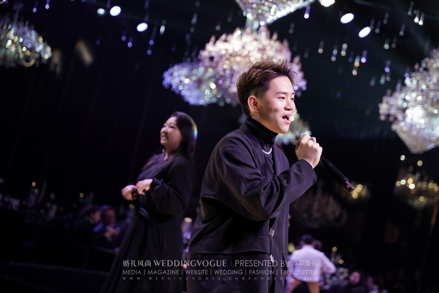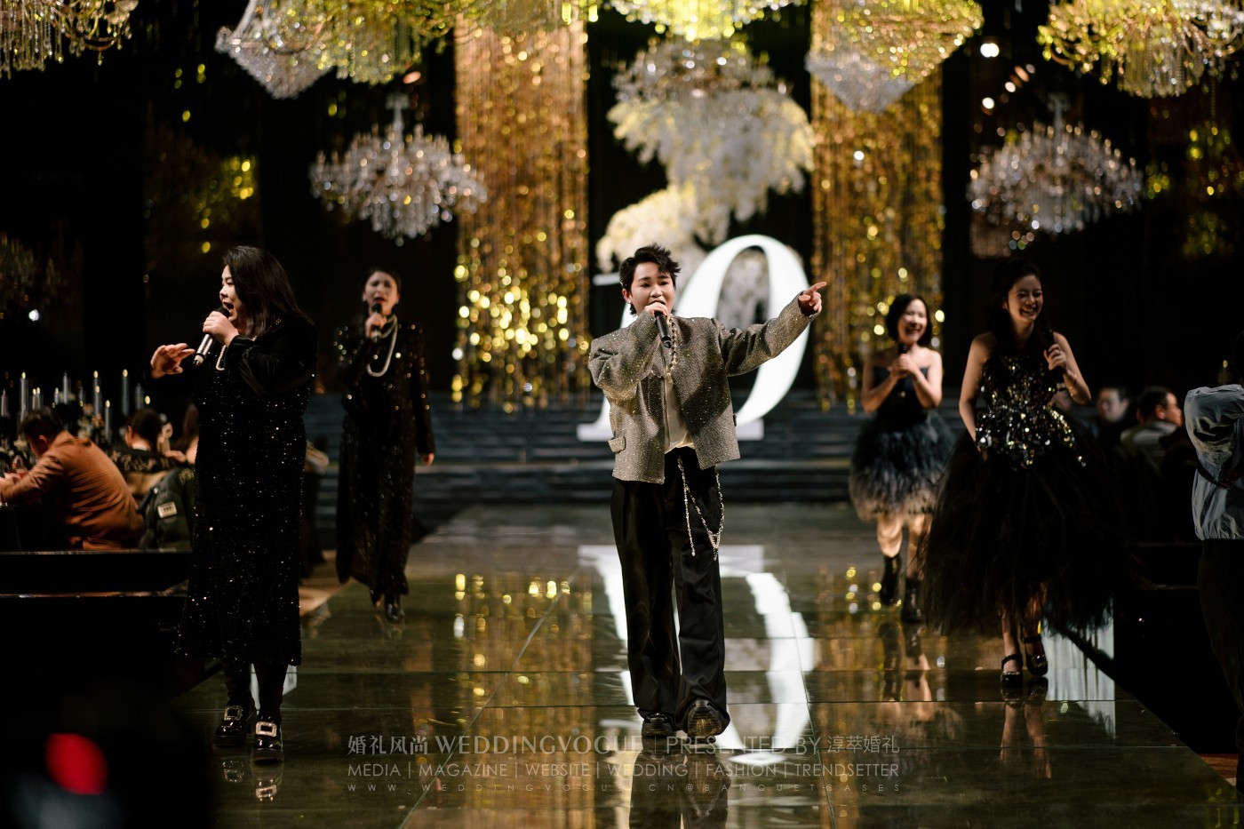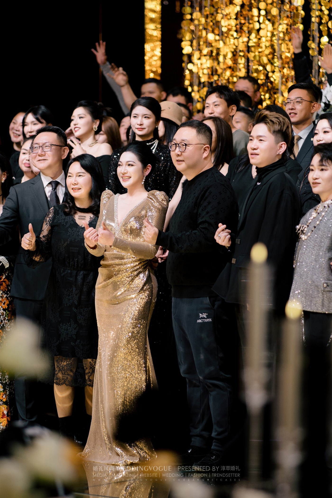 步入庆典现场,一眼便被淳萃婚礼为这特殊日子专门打造的璀璨舞台所震撼,黑金色华美的盛宴质感无与伦比。