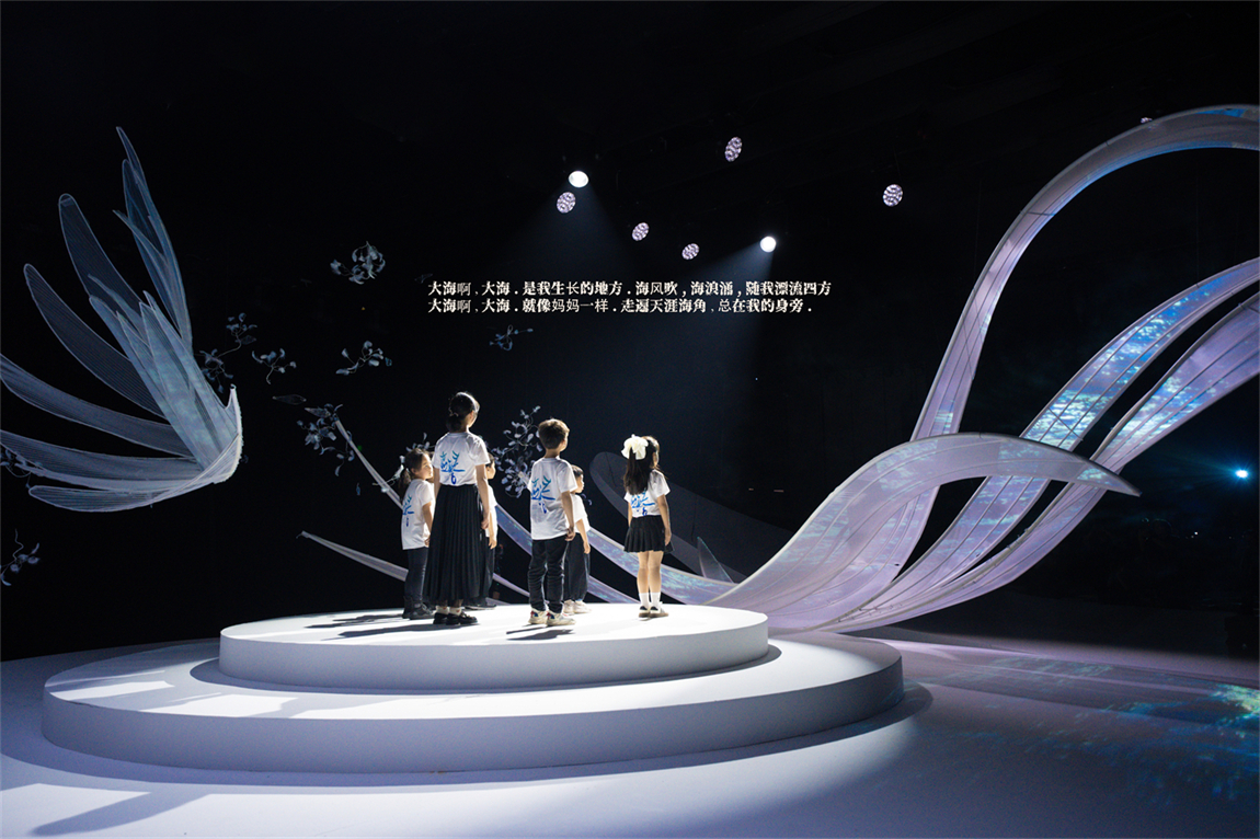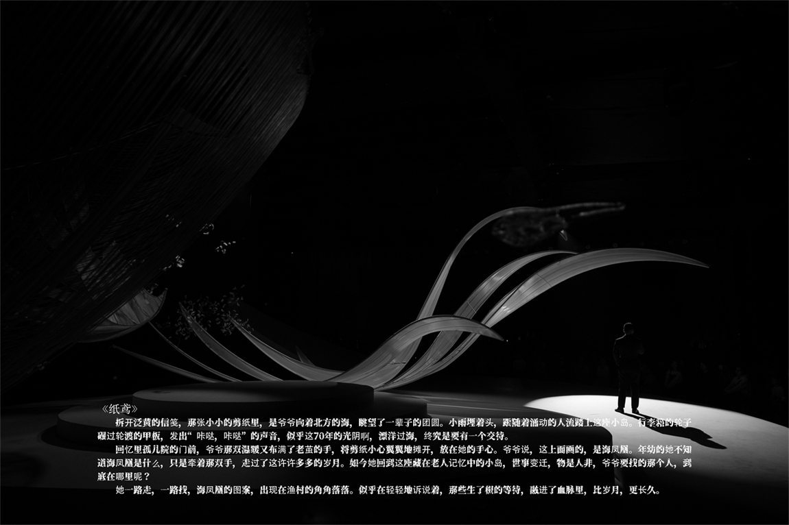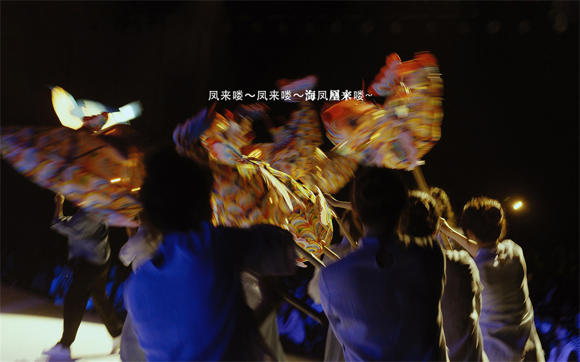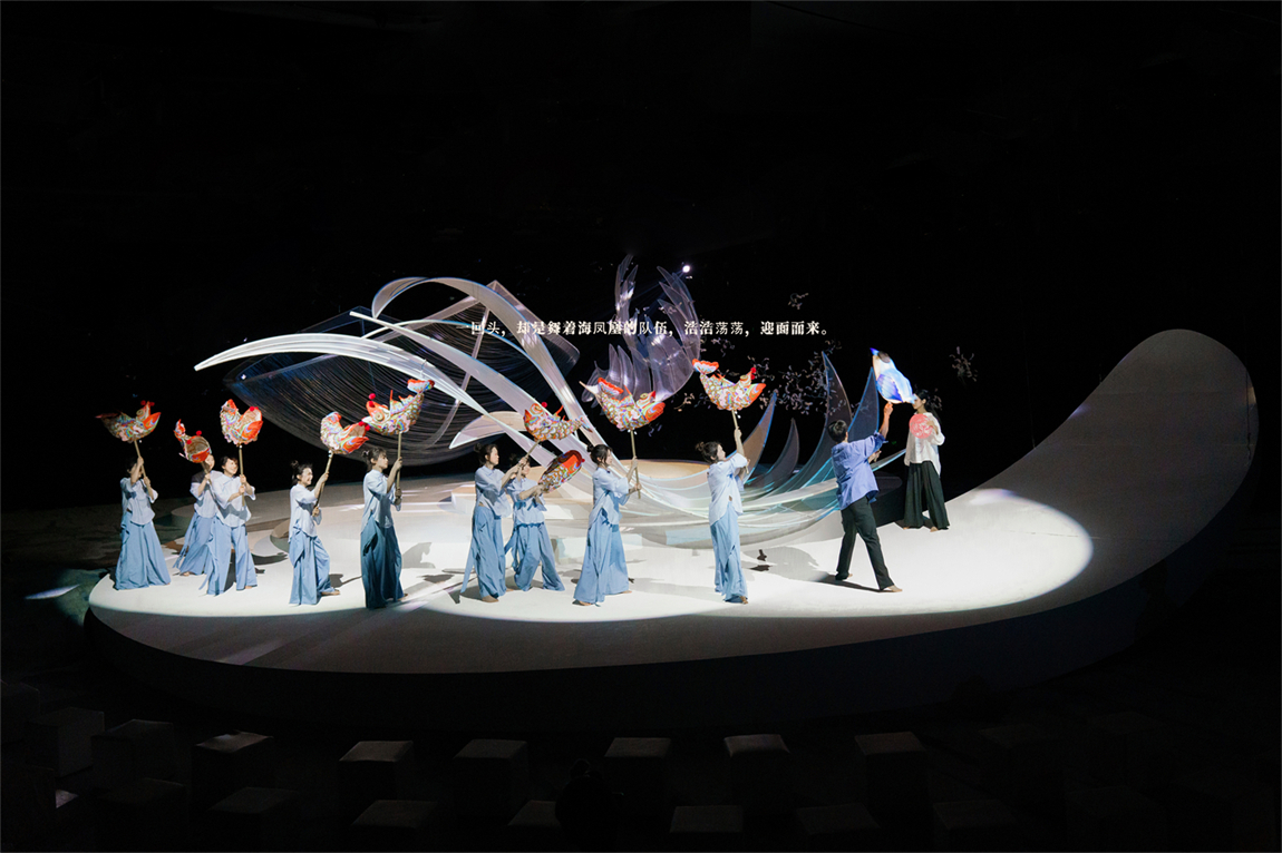 主舞台以“万鸟腾空”为意象,巨型羽翼装置在灯光下舒展,似雏鸟初啼、似候鸟归巢,呼应着东海潮汐的呼吸。