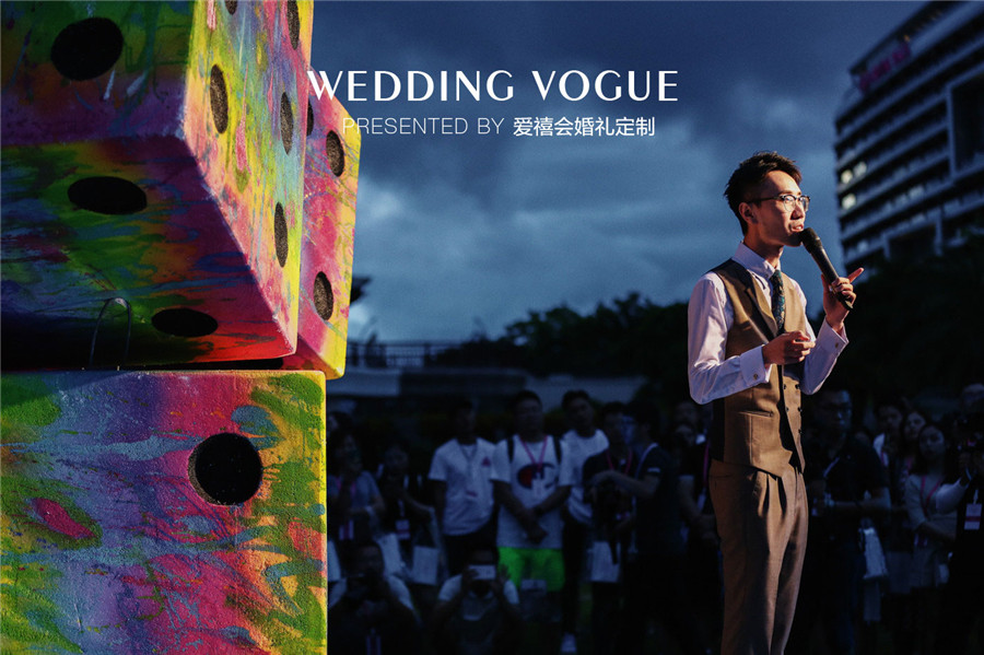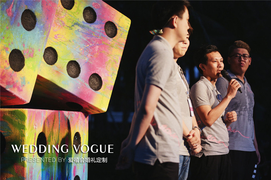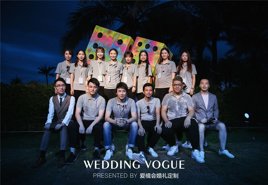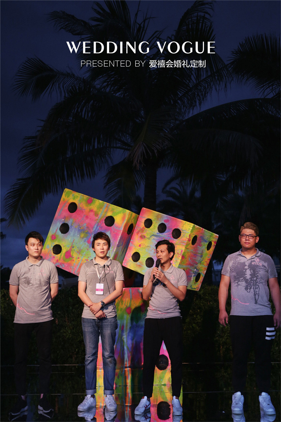 由于三亚天气条件不佳,搭建期间遭遇大雨,一度导致进度拖慢。在宴会设计发布之前,爱禧会的老板一直在现场亲自进行搭建和后续的调试,就连录制采访时,衣服都汗湿的,但是对爱禧会而言能把团队的努力成果展现在全国优秀的婚礼从业者眼前,更是一件值得骄傲的事。