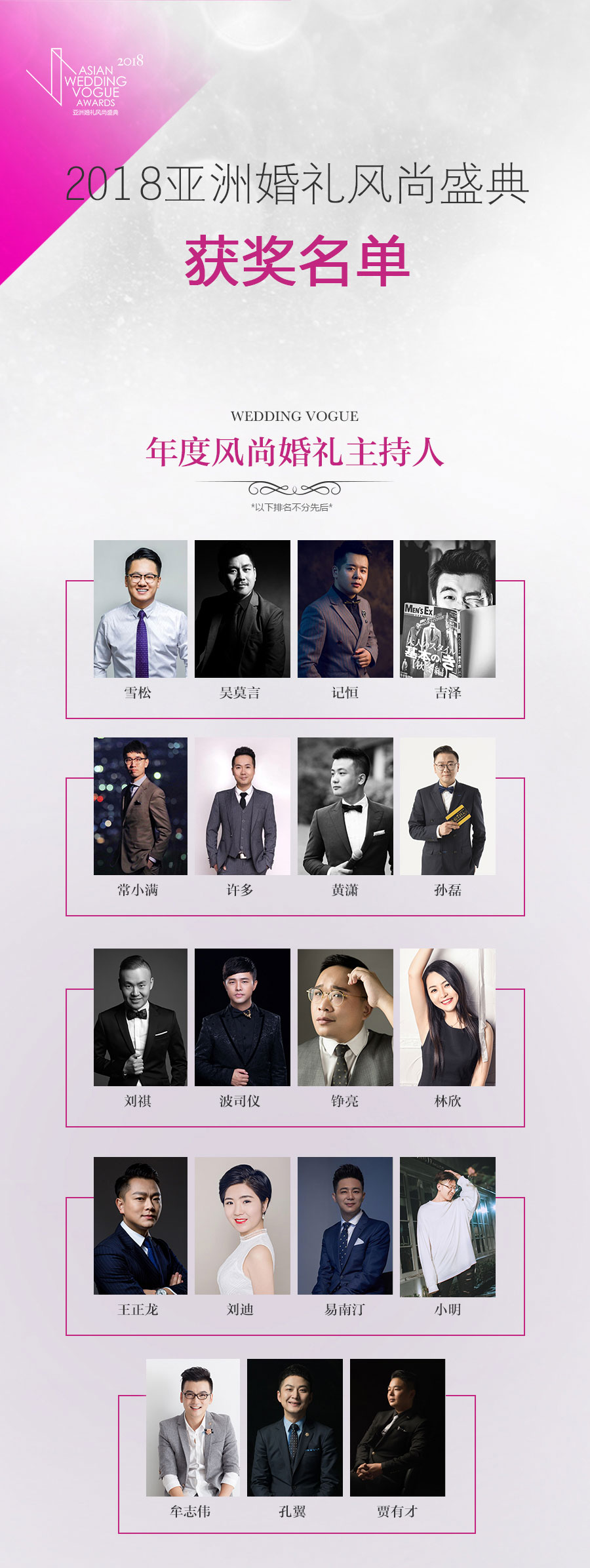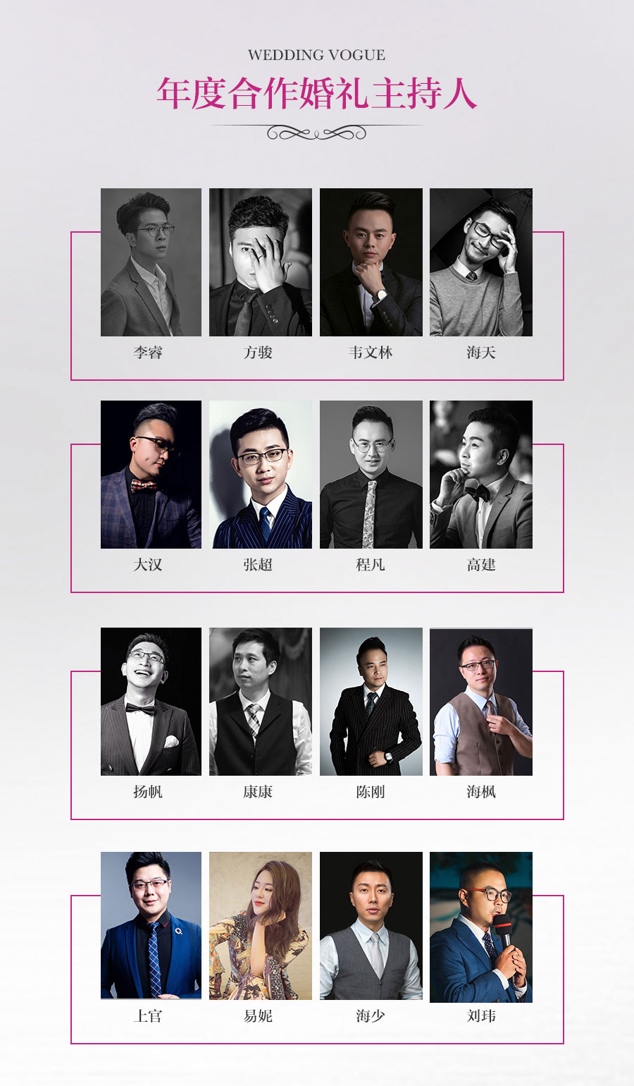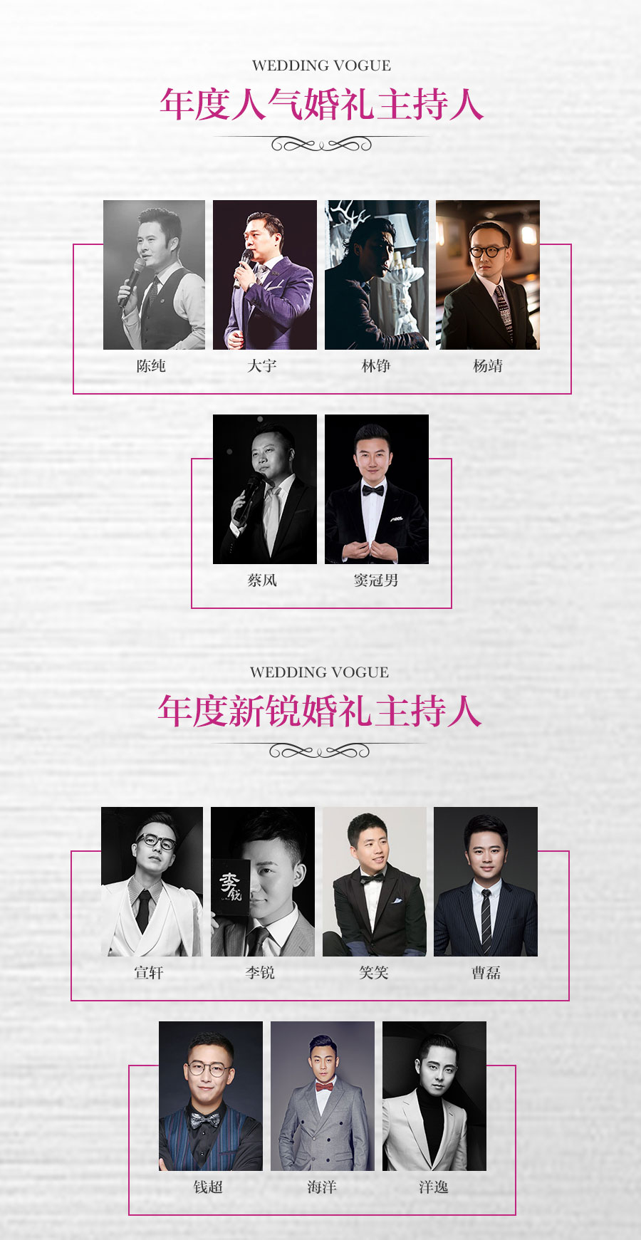 年度人气婚礼主持人:陈纯、大宇、林铮、杨靖 、蔡风、窦冠男