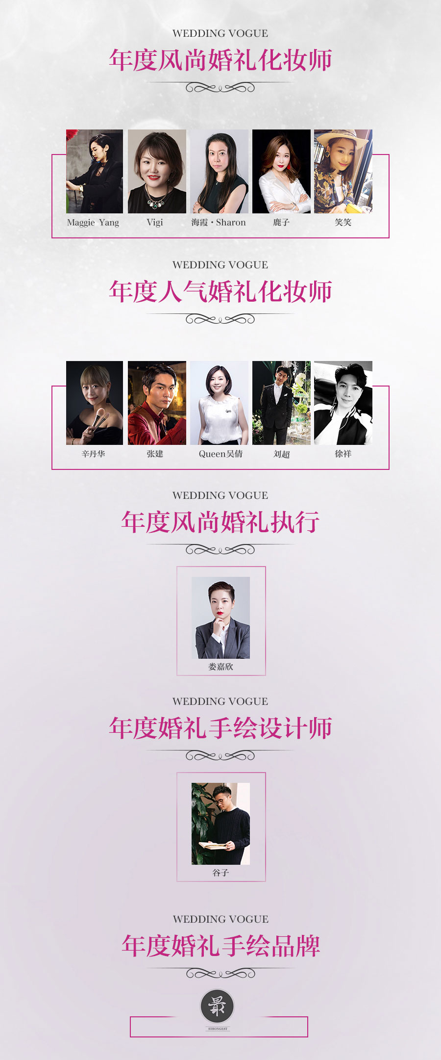 年度风尚婚礼化妆师:Maggie Yang、Vigi、海霞·Sharon、鹿子、笑笑