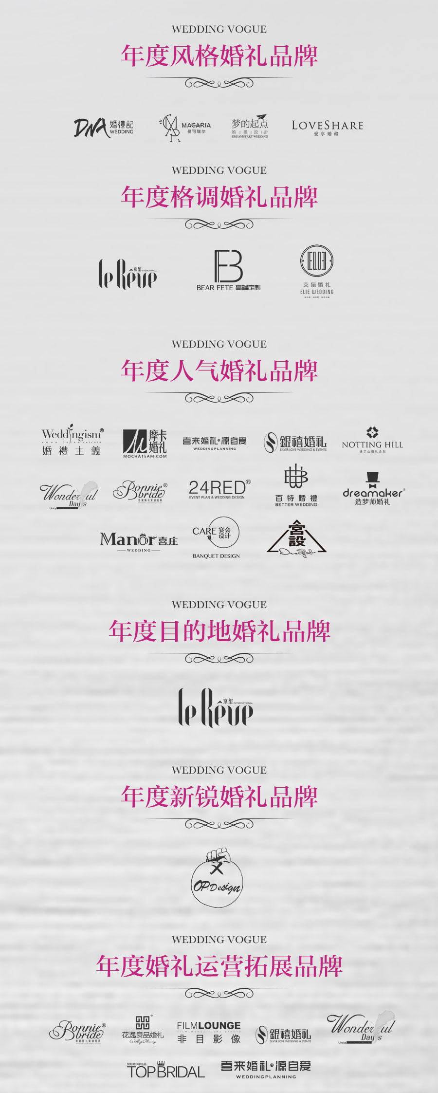 年度风尚婚礼品牌:Wedding Loft、大事婚礼、红绣球、CHOCO-启蔻婚礼、蜜堂婚礼记、萝亚婚礼、天玺婚礼策划