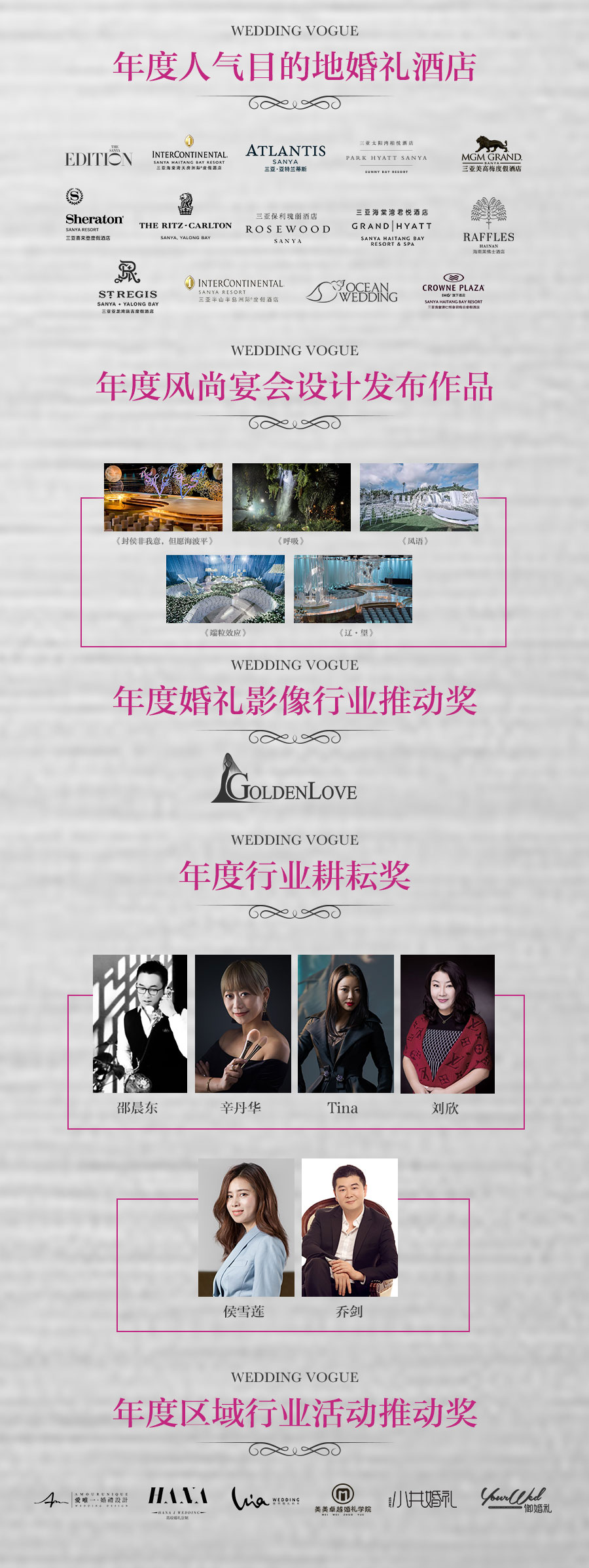 年度风尚婚礼品牌:蔷薇婚礼企划 、三亚御婚礼、 克拉·时刻、三亚唯町秀婚礼、三亚爱之旅高端婚礼顾问