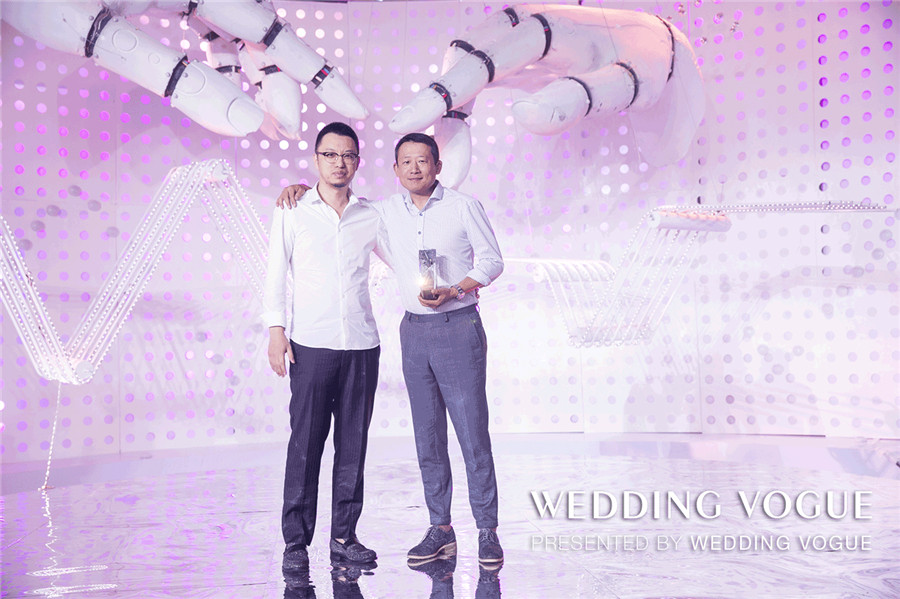 婚礼风尚创办人陈刚与婚礼风尚执行总监王娟互相颁奖