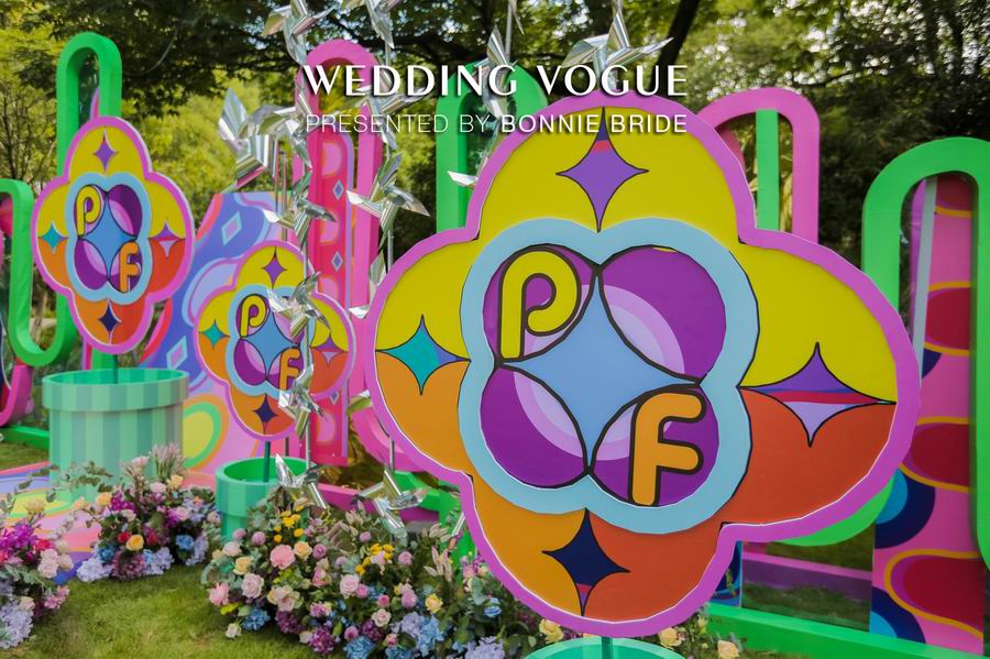 草坪周围所摆放的新人专属LOGO,由象征幸运的四叶草为主设计元素。在四叶草中闪烁的星星,寓意着彼此眼中对方是特别闪耀的存在。而整个logo的造型也像极了《超级马里奥》中,让马里奥变得更加强大的子弹花。我是你的马里奥,只因为你而强大,永远守护你。