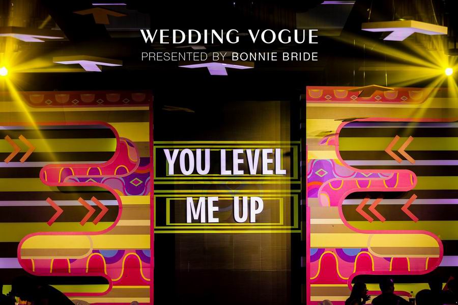 当一切就绪之后,就来到游戏的最后关卡,亦是婚礼的主宴会厅场地。室内宴会厅的设计主题被定义为YOU LEVEL ME UP,预示着爱的力量让两人在这个充满了诱惑和未知的世界里一步步升级,变成更为强大和优秀的彼此。