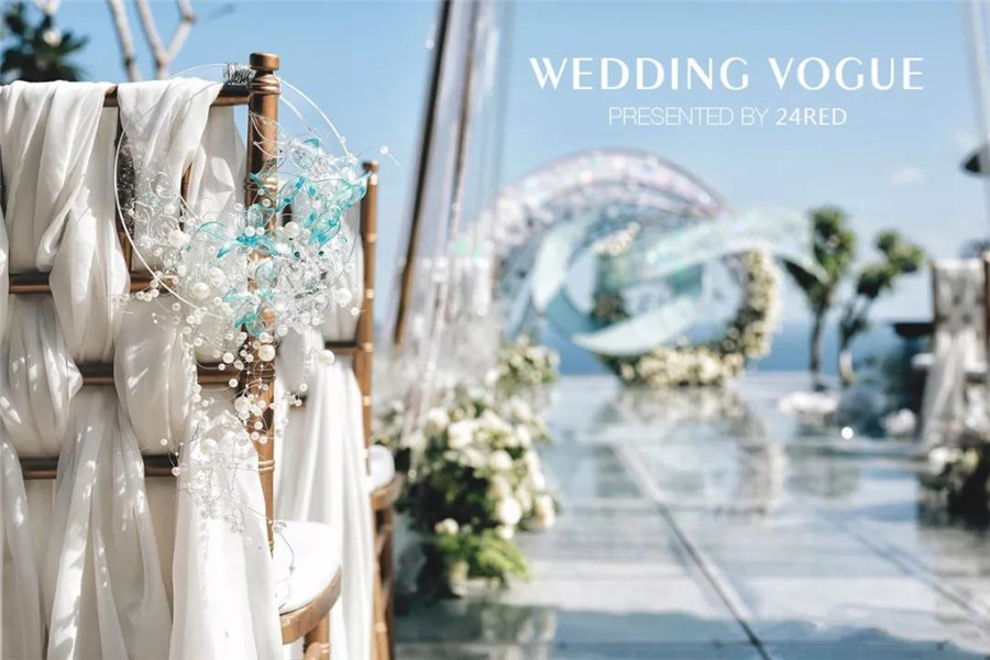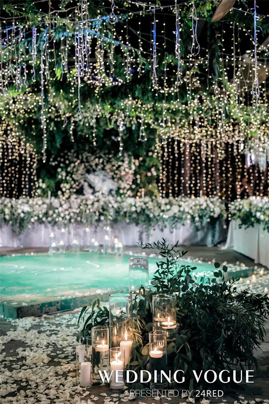 24RED在别墅水台的上方加了水晶T台,有效利用水晶的光泽度来与水面交相呼应,相映成趣。同时还可以让宾客坐在离新人仪式舞台较近的位置。