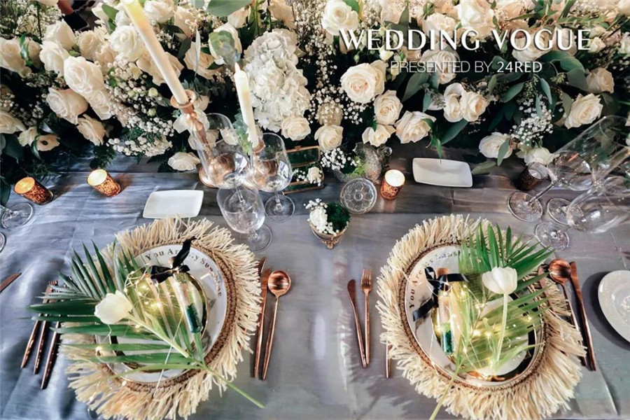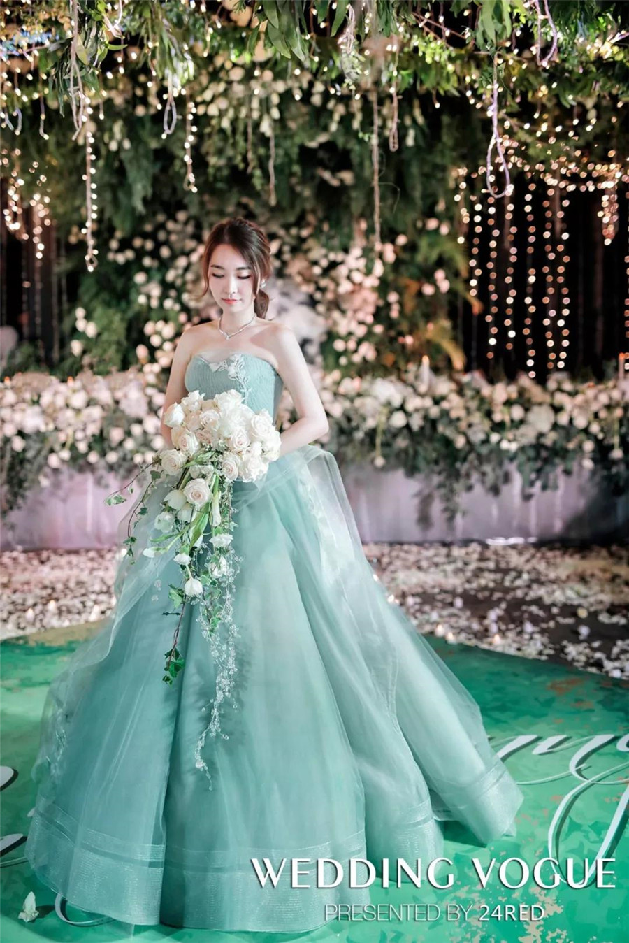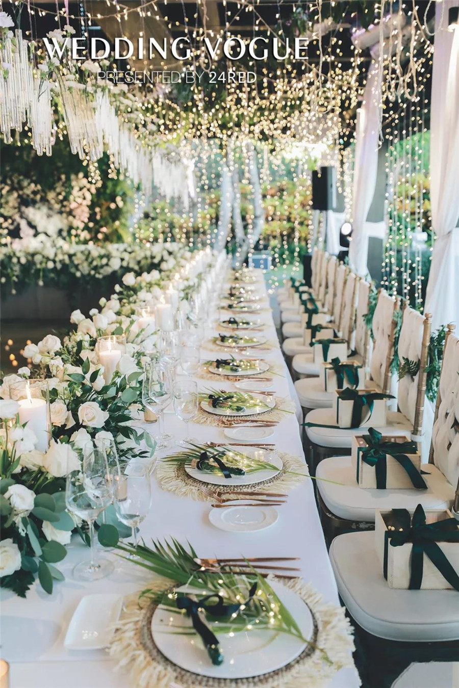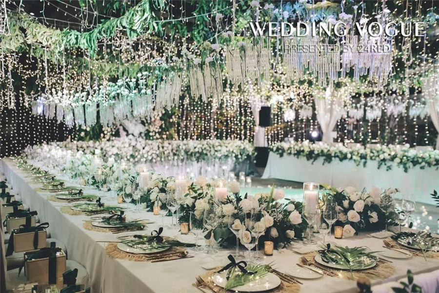 晚宴则选择在酒店有顶的场地做了新娘喜欢的白绿森系,就像他们的爱情,因一场双方都不“待见”的相亲开始,但却冥冥中遇到了最合适的彼此。琐碎简单的生活中映照着平凡的浪漫,清新而动人。