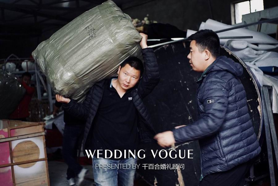 尽管秋季的库布齐沙漠是最适宜徒步进入的时节,但沙漠的风力也能达到4-5级强度。为了有效的防御大风与沙尘,设计师在前期设计上就尽量使用能够平衡受力的道具。也因为考虑到沙漠场地的独特性,为了解决搭建时的固定吃重问题,千百合团队提前制作了坚固的铁艺底盘,在现场挖深坑填入沙子后,再用铁丝进行捆绑固定。而这些厚重的搭建物料,因为沙漠区域不能开车进入,所以也只能依靠人力搬运本次婚礼所需要的全部货物。