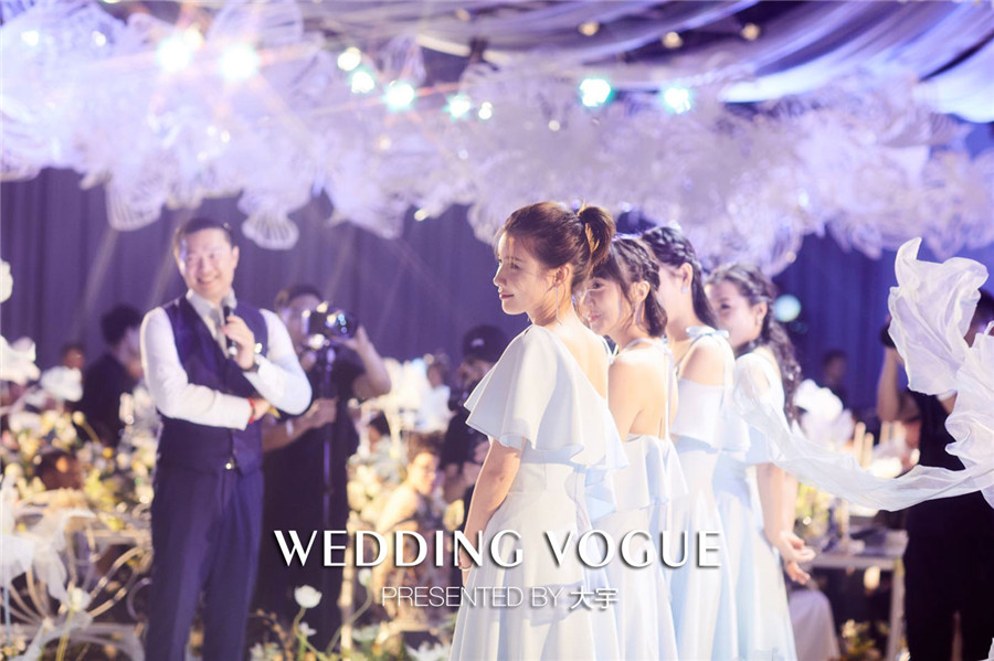 对于主持人,每个人的选择不同。于张馨予而言,她是一个很纯粹且极富艺术感的女生,有着很高的审美要求。比如她选择的婚礼色系是一般新人很少会选择的蓝灰色系。她很清楚的知道自己想要的主持人是什么样子的。最后他们夫妇一致选择了文化底蕴深厚且兼具文艺感的主持人大宇。