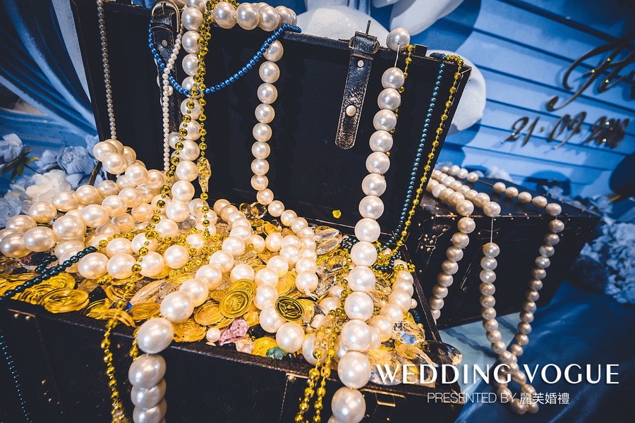 如何在审美疲劳中将海洋风格做出新意,LEAF麗芙婚禮从新人故事出发,中和新郎非常喜欢的海贼王元素与新娘喜好的欧美范儿,最终LEAF麗芙婚禮选取加勒比海盗风格与海洋风格融合。