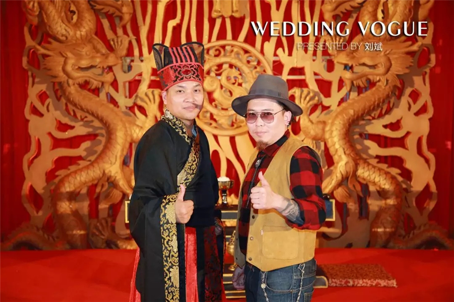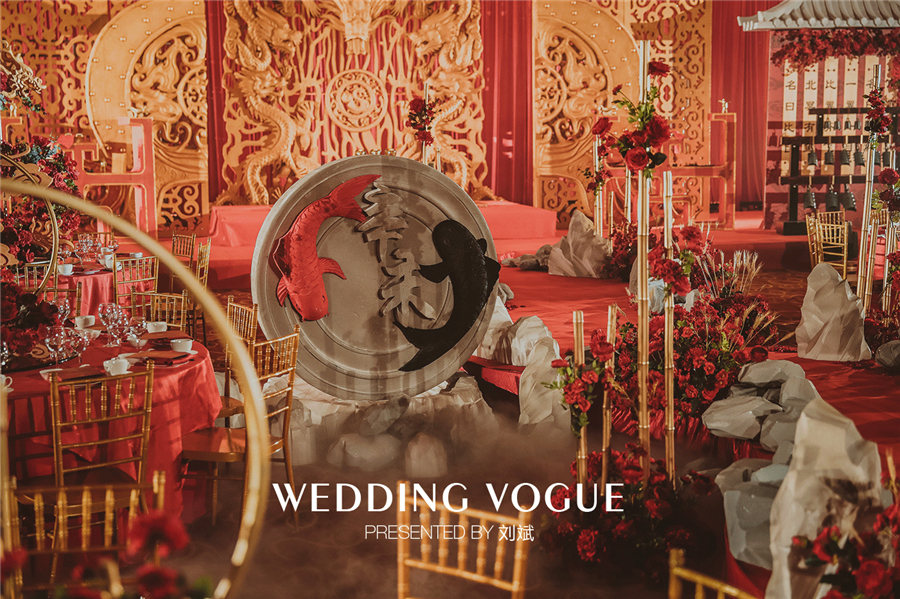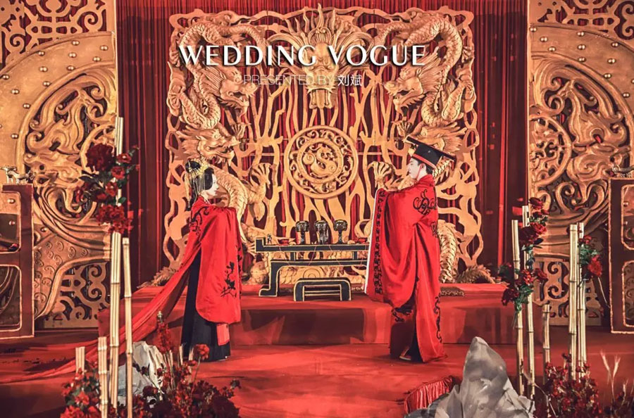 而这场婚礼,便是跨界设计师刘斌以华人对天地的敬畏之意作为主要的设计灵感,为一对喜爱中华文化的新人,量身打造的一场独具国风的汉唐文化婚礼。
