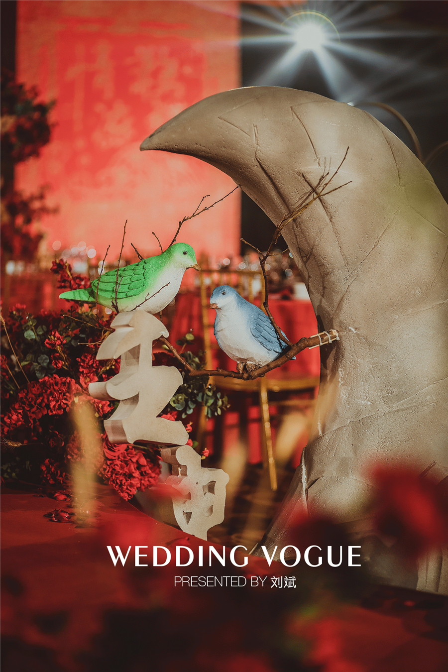 因感知到一对新人的爱恋情深,设计师以鹣鲽情浓作为本次婚礼的主题。而鹣与鲽亦理所当然的成为了设计师的主要设计元素。