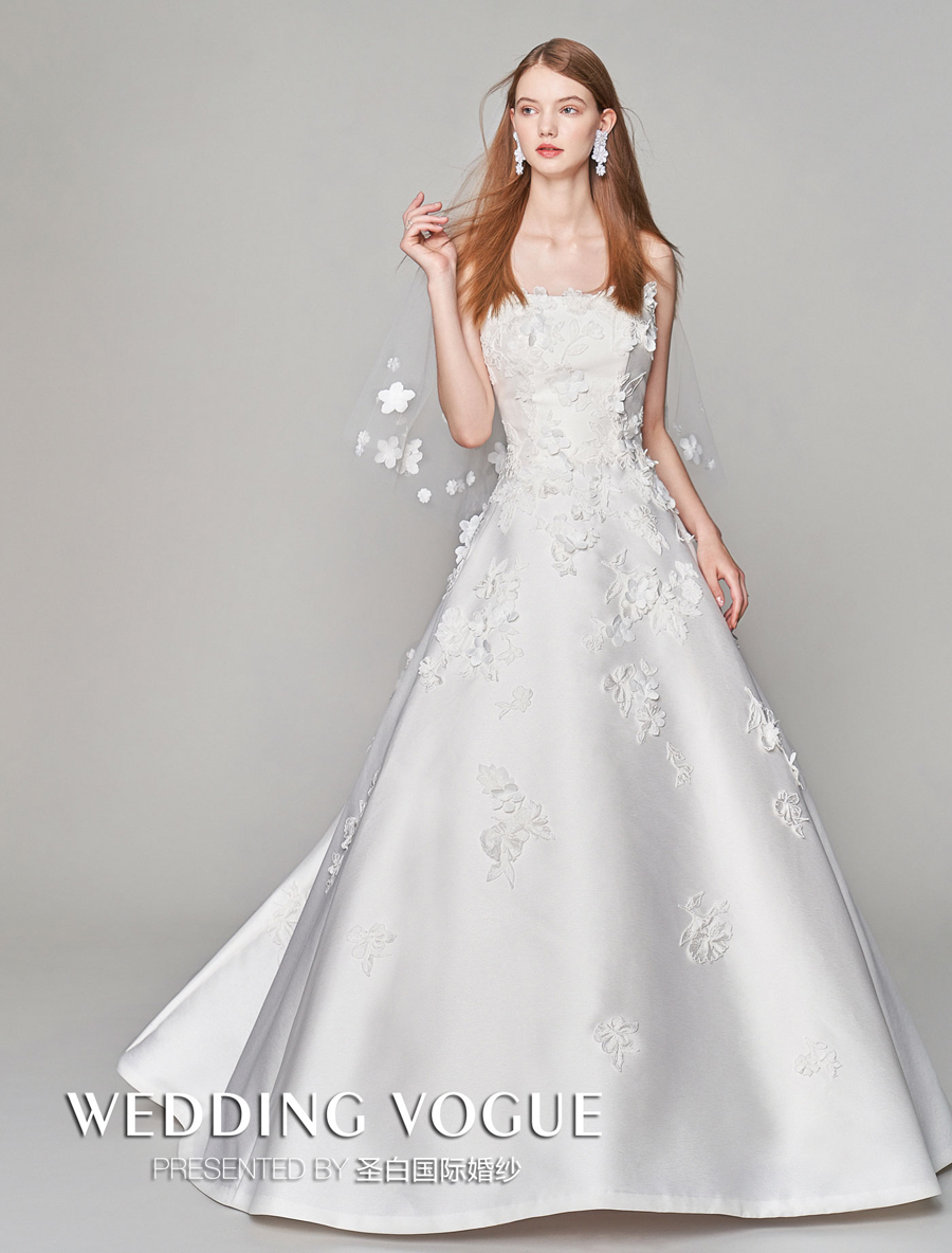 平角婚纱:这种类型的婚纱设计一般不会有过于繁复的造型或花纹,简约大气是精髓。