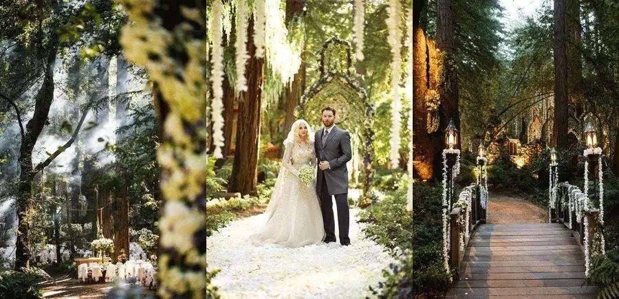 在新郎心中,一直都有着一个dream wedding。他特别喜欢前Facebook总裁Sean Parker和歌手Alexandra Lenas在加州大瑟尔森林里举办的那场森林婚礼。整场婚礼不仅拥有着浪漫而复古的氛围气息,还因为造景于自然森林内,而透露出了来自大自然的生气。
