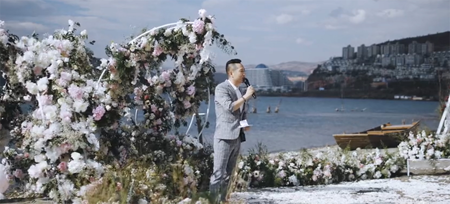 正如婚礼《MEET》中,许多将沉稳和幽默结合的十分融洽。洱海边,蓝天下,婚礼之上的许多不再是单纯的主持人,而是变成了分享者,分享着属于科银和罗敏的故事,将它们的美好分享给现场所有的见证者。