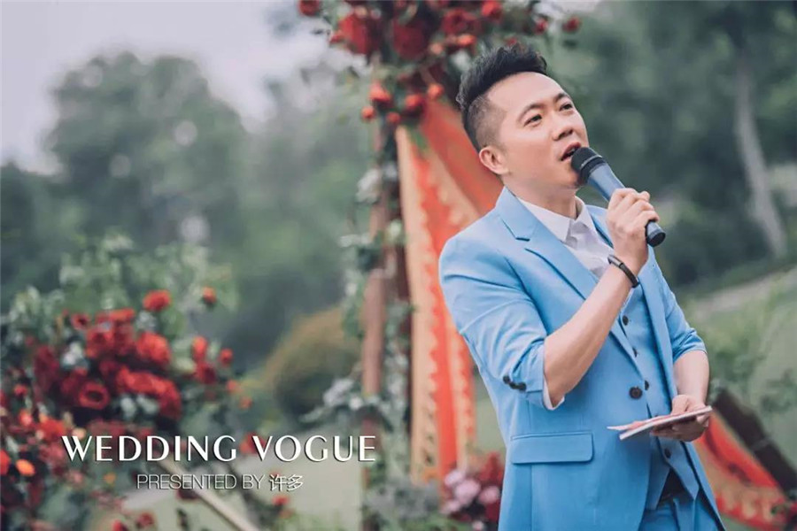 不疾不徐,许多用自己充满磁性的声音和恰到好处的控制将新人的爱情故事娓娓道来,让到场的亲友都能沉浸其中,好的主持就是把自己当做配角为婚礼的男女主角增光添彩,许多做到了。