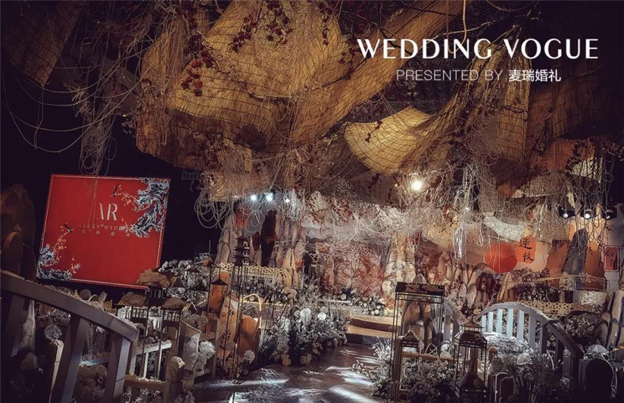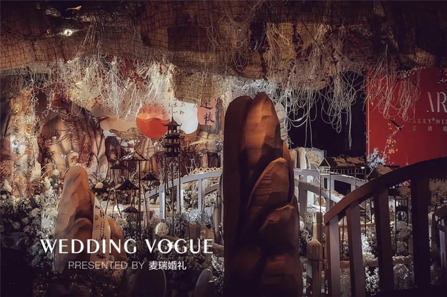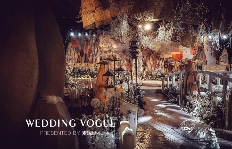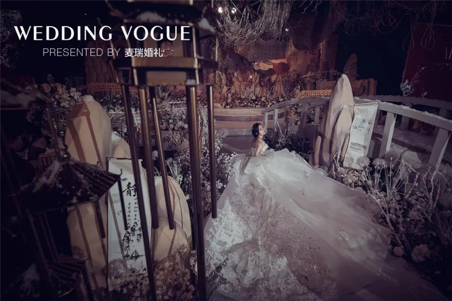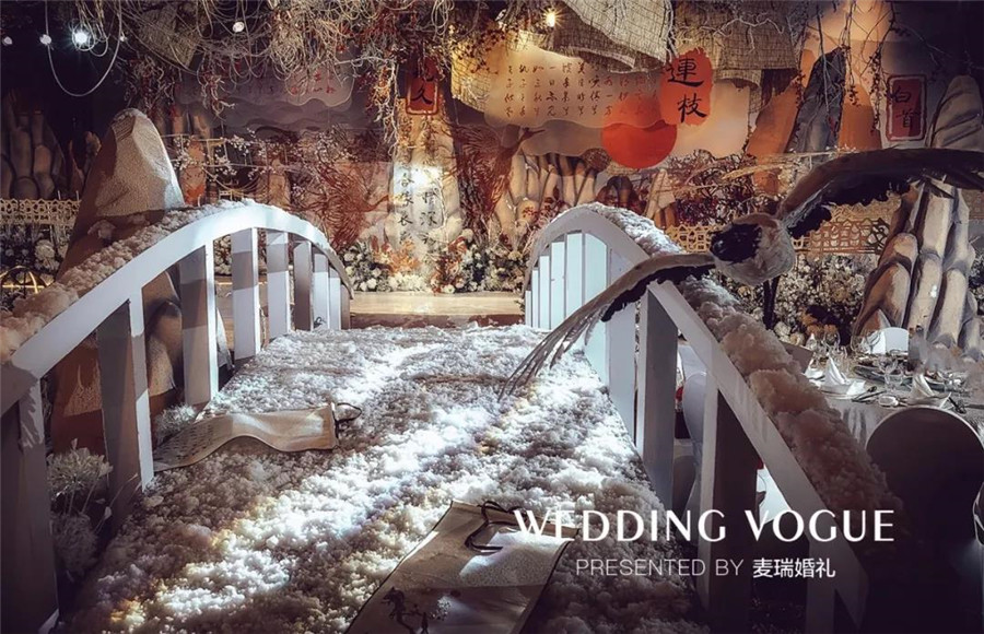 新中式婚礼,是传承也是突破。麦瑞借用假山、白鹤、楼亭、鹊桥等中式元素留住了传统文化的“魂”;又运用人造雪、冰冻花等创意营造出了中式婚礼的“新”。巧心匠思,令人赞叹。