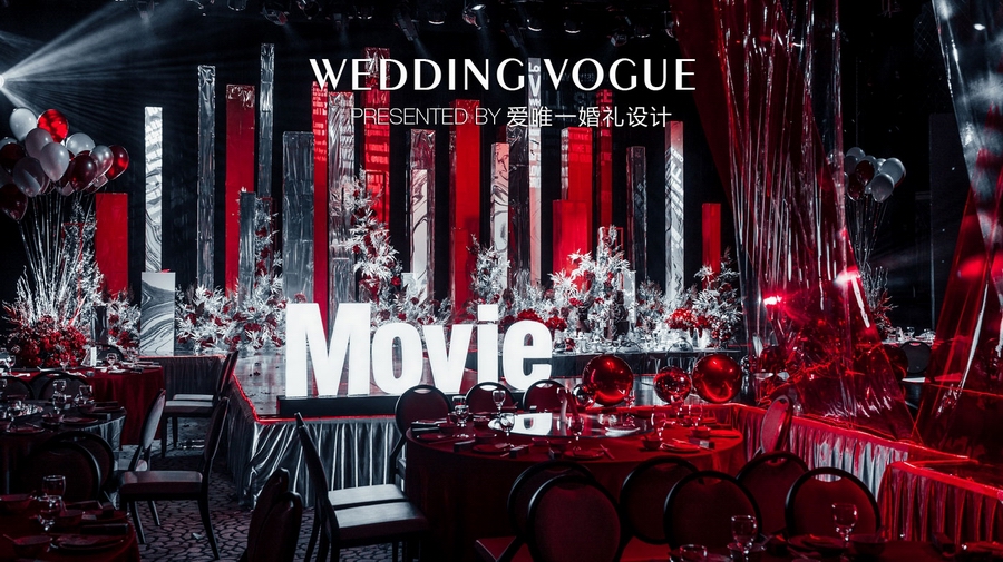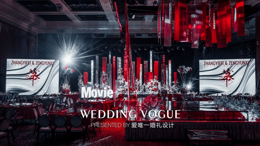 经过一幕幕的放映,“电影”进入高潮,正如婚礼主舞台浓重的色调。