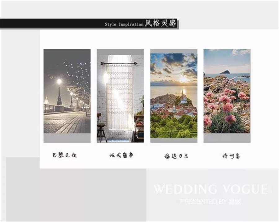迷人时尚的巴黎之夜,象征浪漫希望的海边日出,为了能够表现出新人携手走过十年的点点滴滴,易妮将自然的感觉带入了婚礼之中,留取了它们核心的元素。