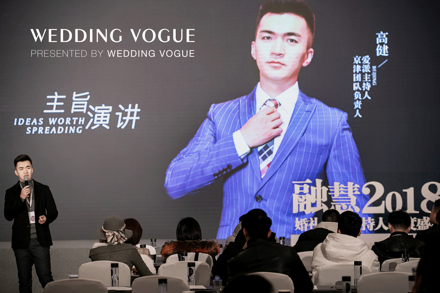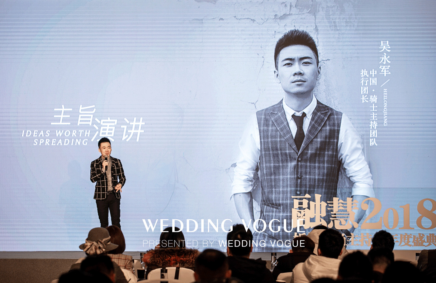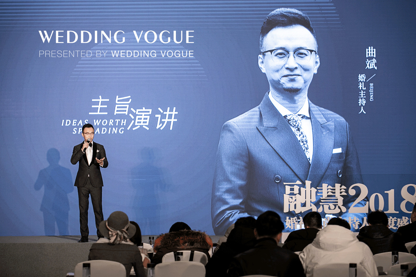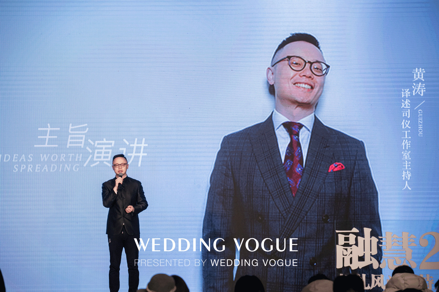 黄涛在此次的演讲中讲述了自己作为婚礼主持人的历程,纵使被生活碾压,依旧要乐观面对,选择了这一条路就一直要坚定下去,在婚礼行业内我们既要看到自己的价值,也不能因为自己的价值而骄傲。