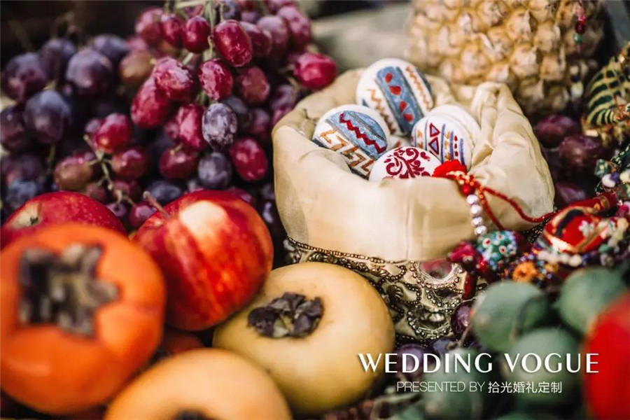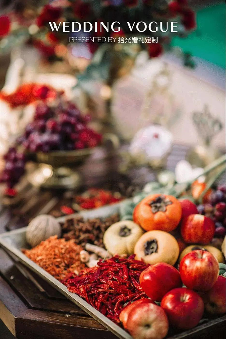 八角、桂皮、辣粉、香料、水果,突破以往传统的甜品台,好玩、有趣并充分体现地域特色是此次拾光设计的重点。香料的芬芳、水果味的清新,再搭配生活化气息的八角等,不多不少,生动和浪漫平衡的刚刚好。