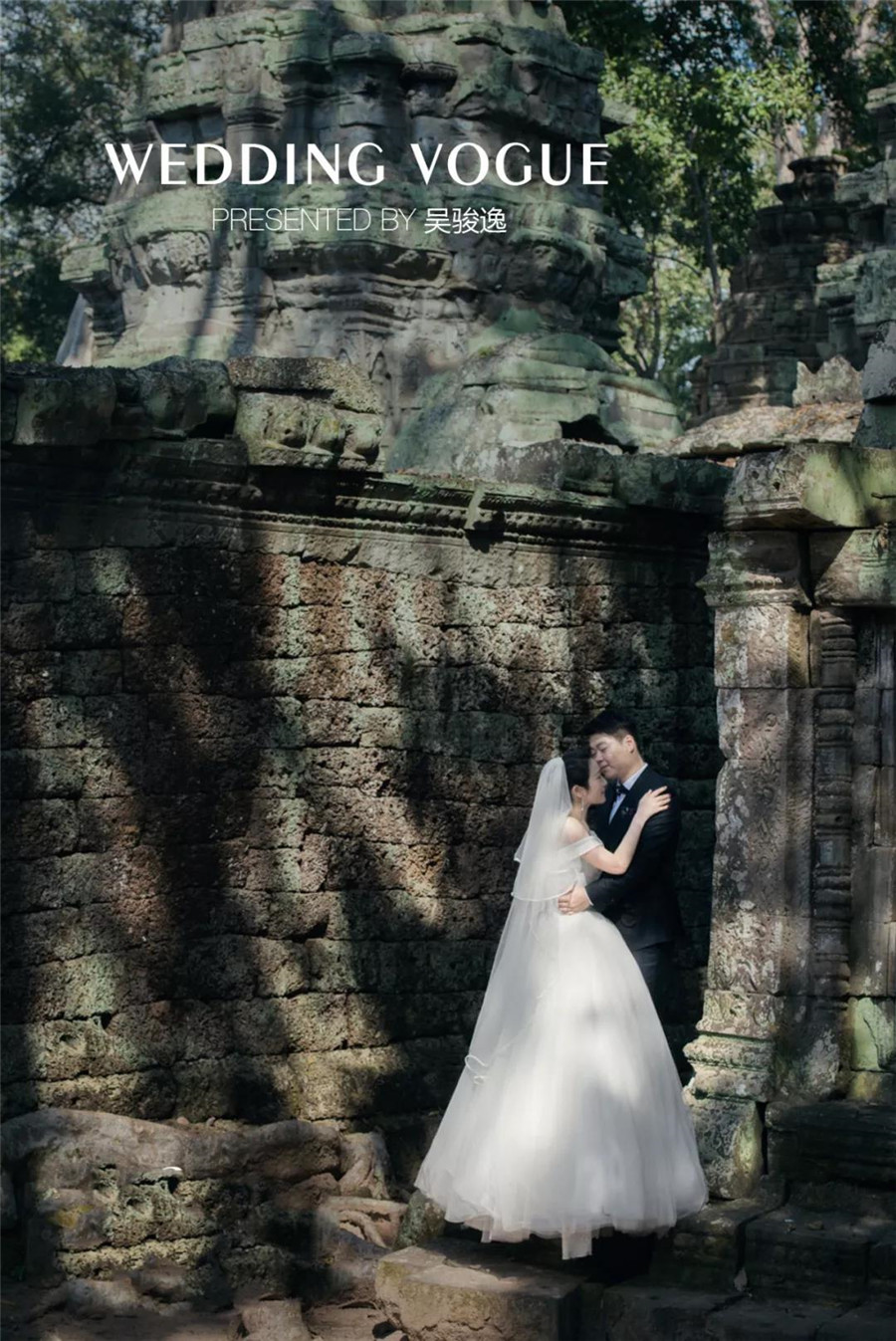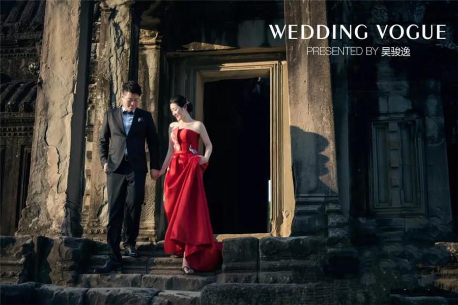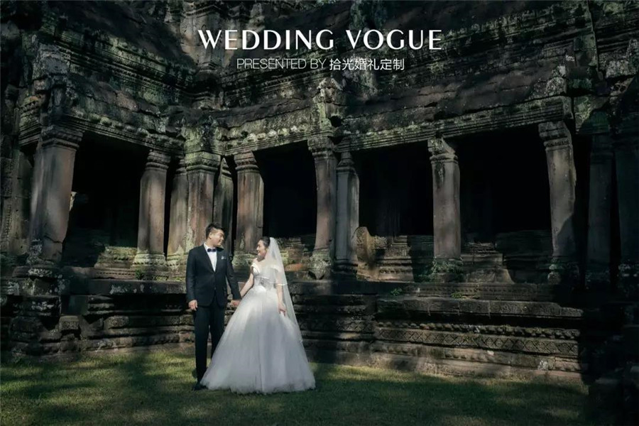 新娘一袭红衣立于柬埔寨古老的庙宇之中,灰褐色的墙砖,热烈如火的红色,一新一旧,一个代表过往,一个预示未来。摄像师东木用镜头将他们的幸福与柬埔寨的悠久一同定格保留,而拾光婚礼定制则以新人的英文名【Jason&Cathy】为主题,做了一场很“柬埔寨”的婚礼,让他们重温初遇彼此的感动。