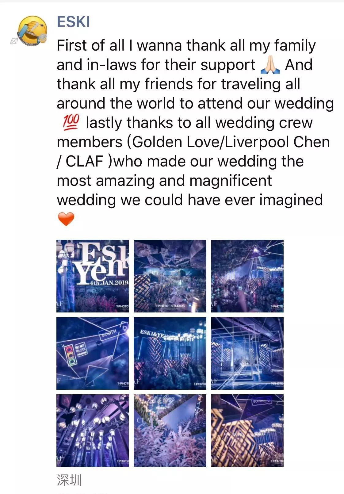 婚礼结束之后,Eski和Yeny在朋友圈表达了自己对于这场婚礼的感受,他们的称赞对于克拉·时刻来说,既是赞赏也是一份认可,认可他们对于婚礼的创造与创新。
