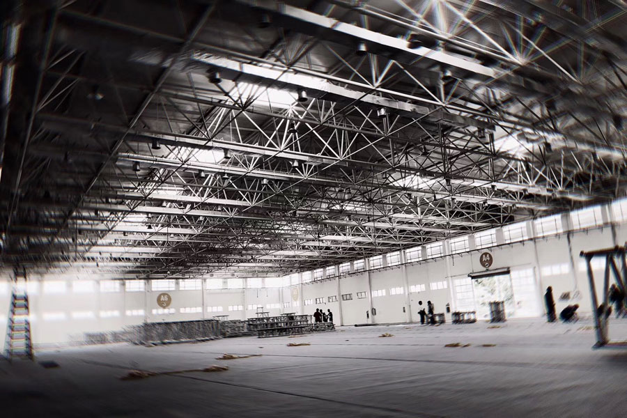 这场于归宴的场地很特别,位于陈村花卉世界展览中心。场地占地面积达5000平方,类似于一个陈旧体育场,里面全空,层高很高很大,婚礼当天酒席就有200多桌。