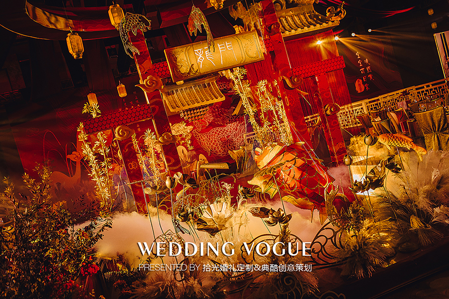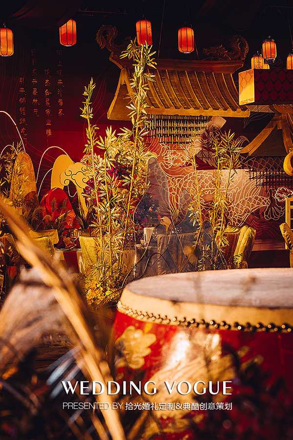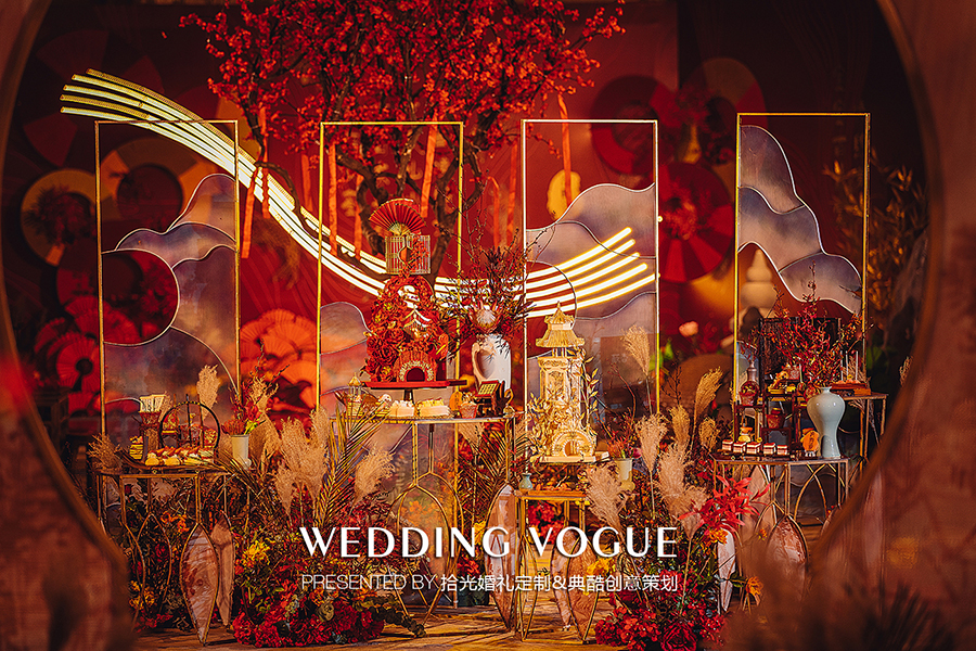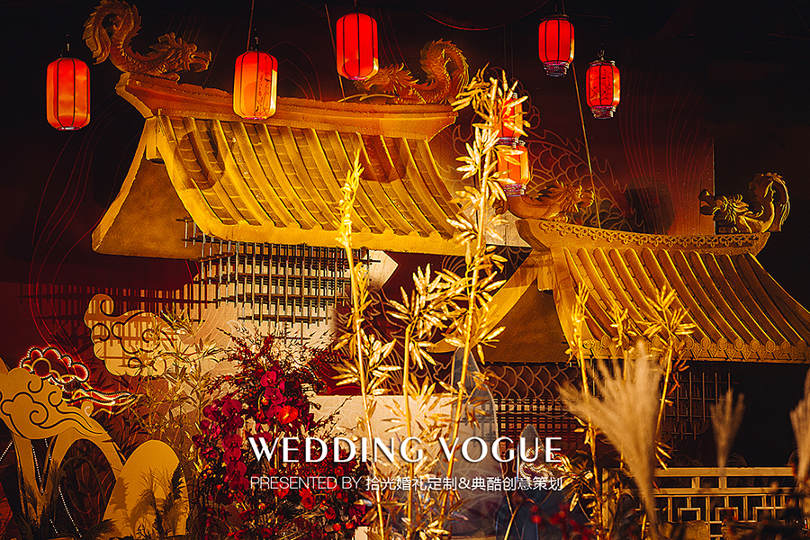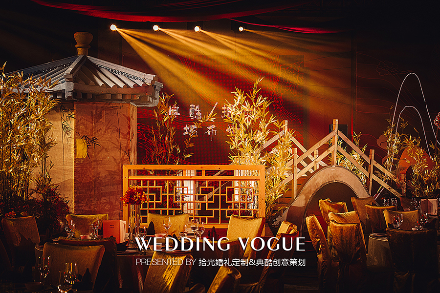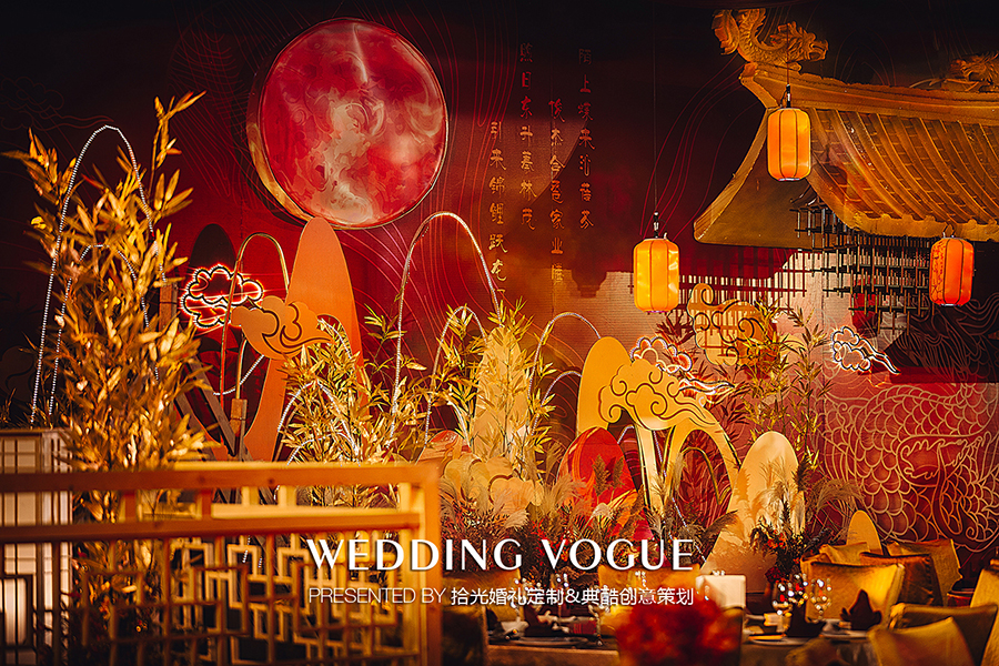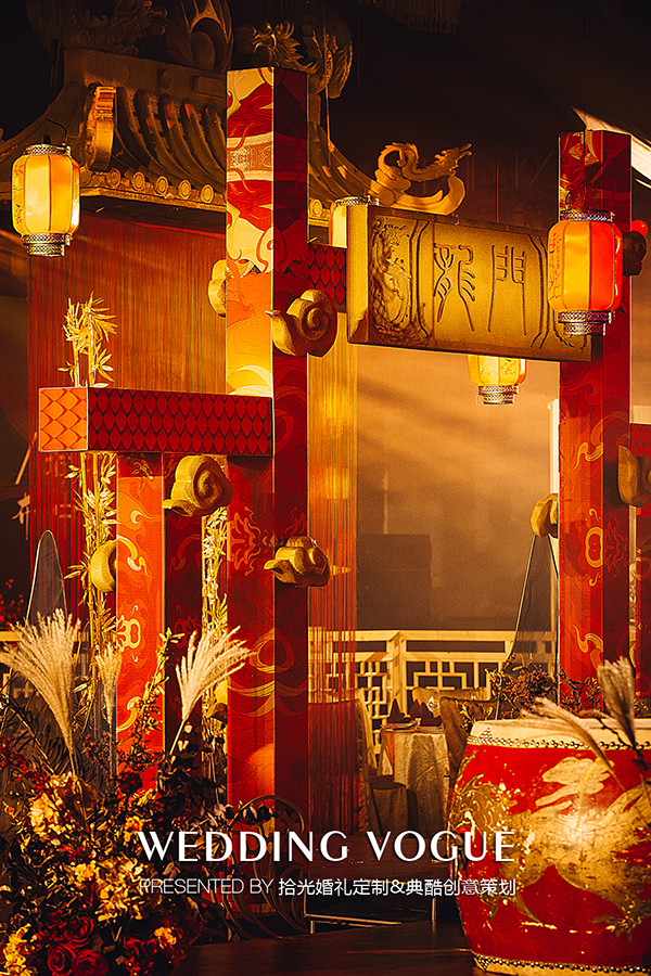 此次拾光婚礼定制与典酷创意策划联袂打造以中式传统文化为基调,结合现代科技的宴会设计案例。