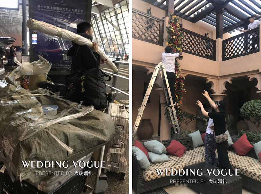 因为地域的差异,很多提前设计的道具和方案无法在当地实现,所以麦瑞婚礼团队的小伙伴提前三天前往迪拜并从国内托运了很多物料。到达迪拜之后前往Shopping Mall购置了很多富有阿拉伯特色的金属工艺品。