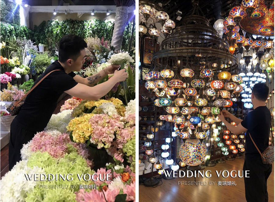 ① 当地花材市场挑选婚礼花材 ② Shopping Mall 挑选婚礼装饰品